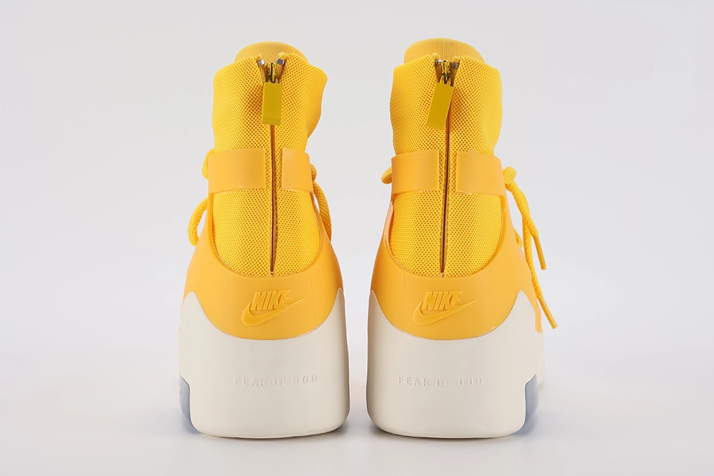 Constructed with a premium blend of mesh and suede, the design maintains a luxurious feel while ensuring durability and breathability. The sneaker’s most distinctive feature is its chunky yet sleek sole unit, which houses Nike’s cutting-edge Zoom Air technology. This provides unparalleled comfort and support, making the Air Fear Of God 1 not just a fashion statement but a marvel of sneaker engineering.