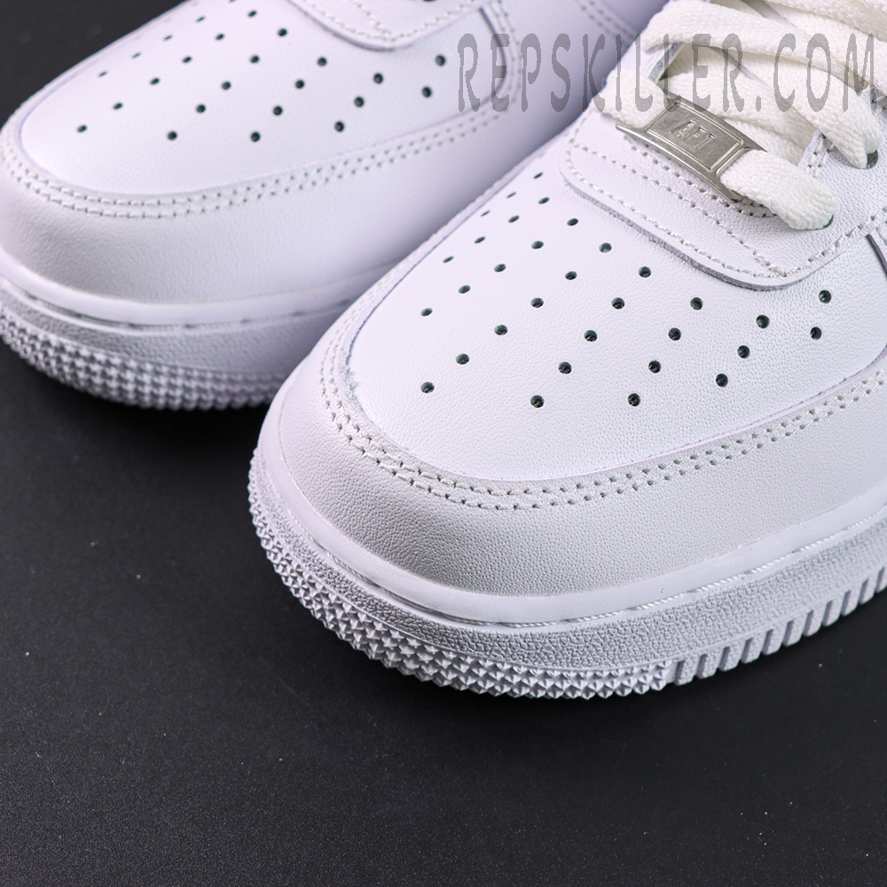 The Air Force 1 ‘07 “Triple White” delivers timeless simplicity with its all-white design, highlighting the sneaker’s iconic shape and clean lines. Constructed from premium white leather, it features classic details like a perforated toe box, adjustable-width lacing, and a metallic silver lace dubrae. The white rubber midsole houses an encapsulated Air unit for lightweight cushioning, while the durable outsole retains the original pivot-point traction pattern for dependable grip and everyday wear.