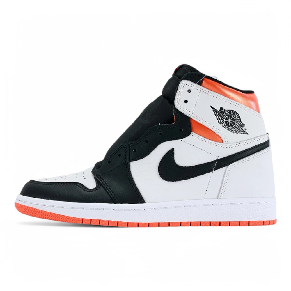 The Air Jordan 1 Retro High OG ‘Electro Orange’ introduces a vibrant and electrifying update to the iconic sneaker line. This striking colorway blends a clean base of white leather with deep black overlays and bold Electro Orange accents on the collar, outsole, and branding details. The combination creates a fresh, standout look that draws attention and compliments any outfit.