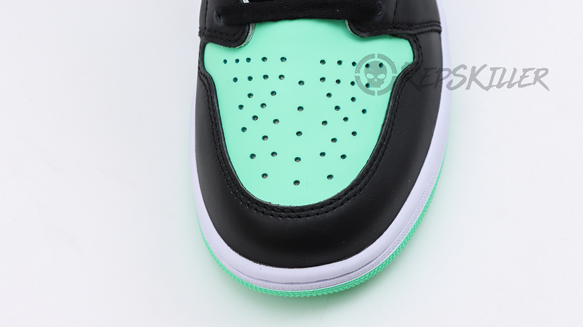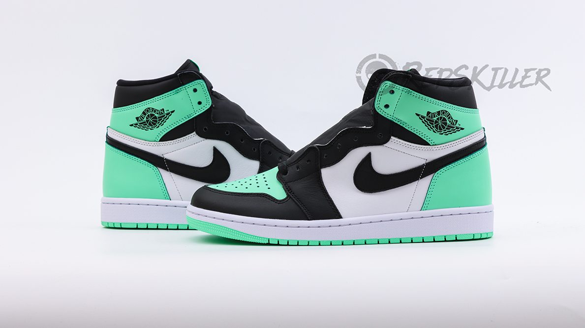 Constructed from premium leather, the “Green Glow” maintains the high standards of Jordan brand craftsmanship. The upper mixes soft, durable leather in a primarily black and white scheme, with eye-catching Green Glow accents on the swoosh, ankle collar, and outsole. These green elements not only add a pop of color but also highlight the timeless design lines of the Air Jordan 1, making the sneaker instantly recognizable.