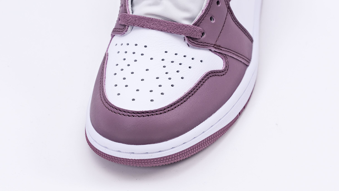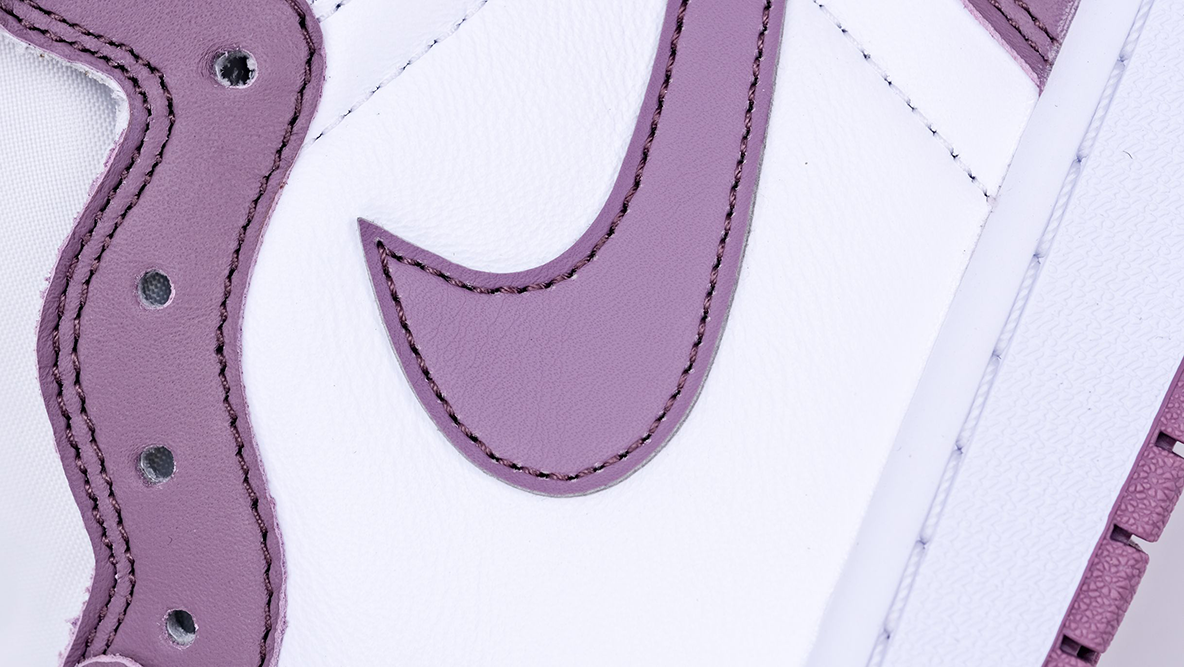 The silhouette maintains the traditional Air Jordan 1 structure, with a high-top profile that supports and protects the ankle. The perforated toe box ensures breathability, enhancing comfort during wear. As with all Air Jordan 1s, the ‘Sky J Mauve’ includes the iconic swoosh on the side, the Air Jordan “Wings” logo on the collar, and the Nike Air branding on the tongue, adding to its authentic charm and historical significance.