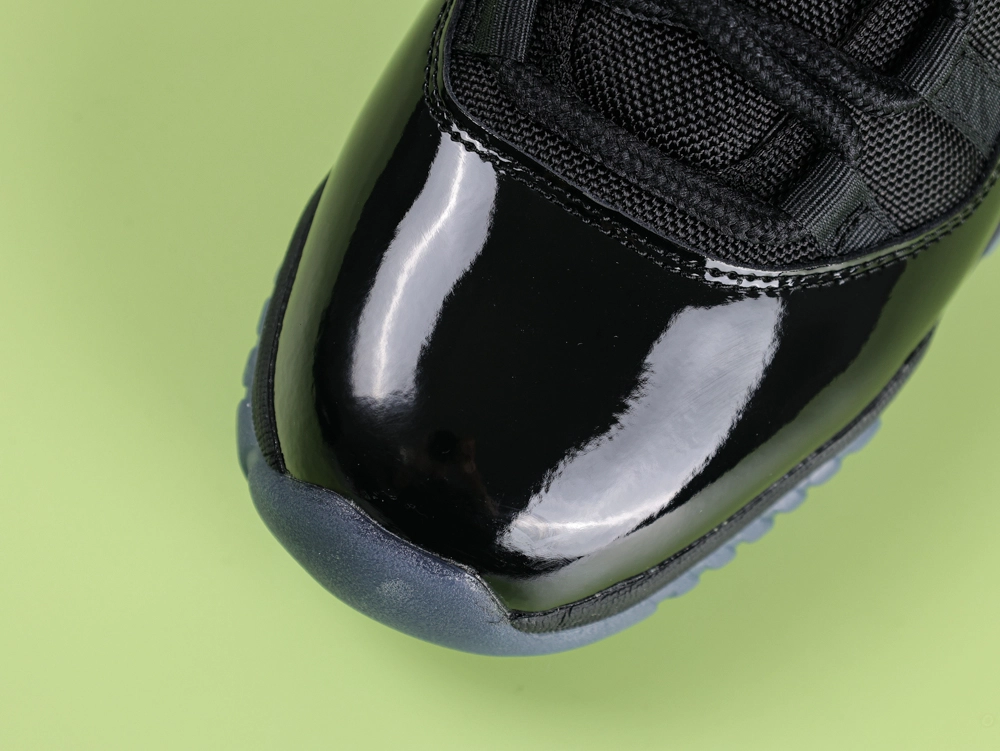 The Air Jordan 11 Retro ‘Gamma Blue’ 2025 revives the highly sought-after 2013 colorway with a sleek, premium construction. This iteration blends a black ballistic mesh upper with a high-gloss patent leather mudguard, creating a bold and luxurious look. The Gamma Blue embroidered Jumpman logo on the lateral heel offers a sharp color pop, complemented by the Varsity Maize ‘23’ on the heel tab. Cushioning is handled by a full-length Air-sole unit encased in a black Phylon midsole, while the translucent blue-tinted outsole features herringbone traction pods for court-ready grip, paired with a carbon fiber shank plate for stability.