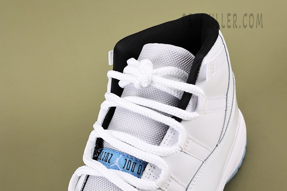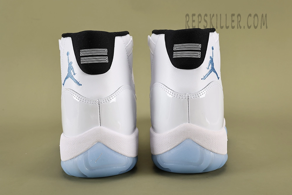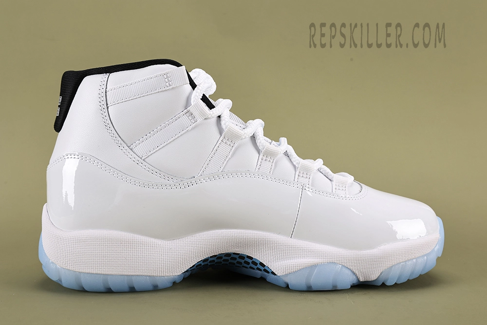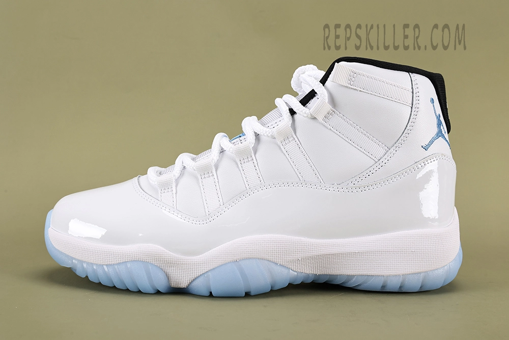 The Air Jordan 11 Retro ‘Legend Blue / Columbia’ 2024 replica showcases a clean white upper with patent leather, complemented by icy blue accents and a translucent sole. This replica retains the classic design and comfort of the original, making it perfect for fans of the iconic silhouette.