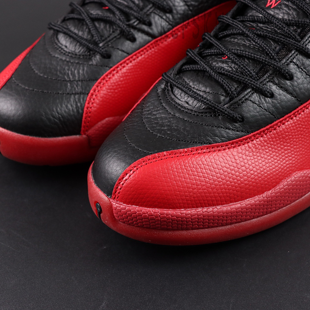 The Air Jordan 12 Retro ‘Flu Game’ 2025 brings back the iconic black and varsity red colorway, commemorating Michael Jordan’s legendary performance during Game 5 of the 1997 NBA Finals. The upper features premium black tumbled leather paired with varsity red lizard-textured overlays, offering a distinctive look and feel. Signature Jumpman branding adorns the tongue and heel tab. The midsole incorporates full-length Zoom Air cushioning, delivering exceptional comfort and responsiveness. A semi-translucent red rubber outsole with black herringbone traction pods ensures superior grip and durability.
