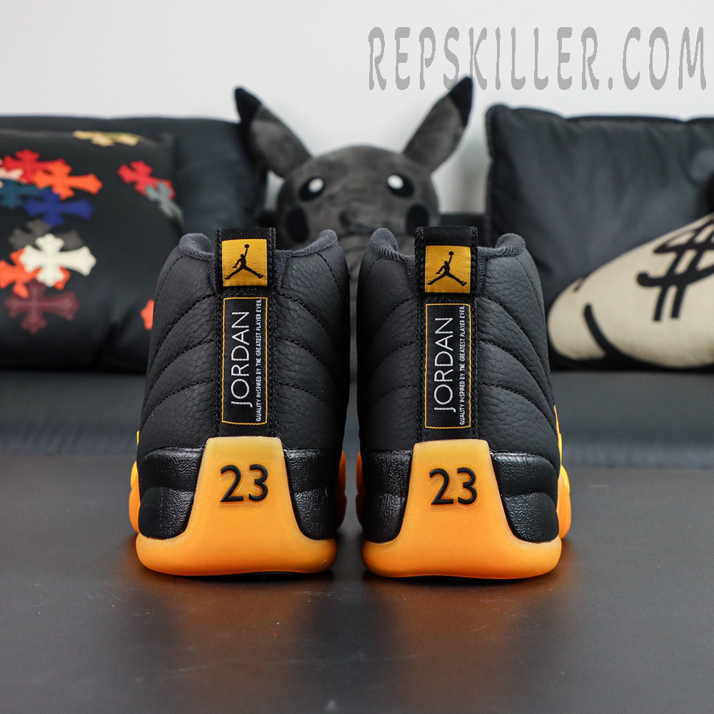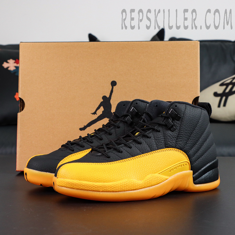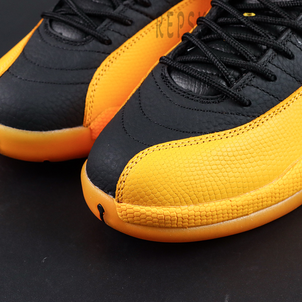The Air Jordan 12 Retro ‘University Gold’ revives a striking PE colorway famously worn by Gary Payton during his brief stint with the Lakers. The upper is constructed from black tumbled leather with signature stitched lines radiating from the midsole, contrasted by University Gold textured leather overlays across the mudguard and forefoot. A matching gold rubber outsole, along with tonal Jumpman branding, adds vibrant energy to the two-tone composition. Underneath, a Phylon midsole housing full-length Zoom Air ensures responsive cushioning for all-day comfort.