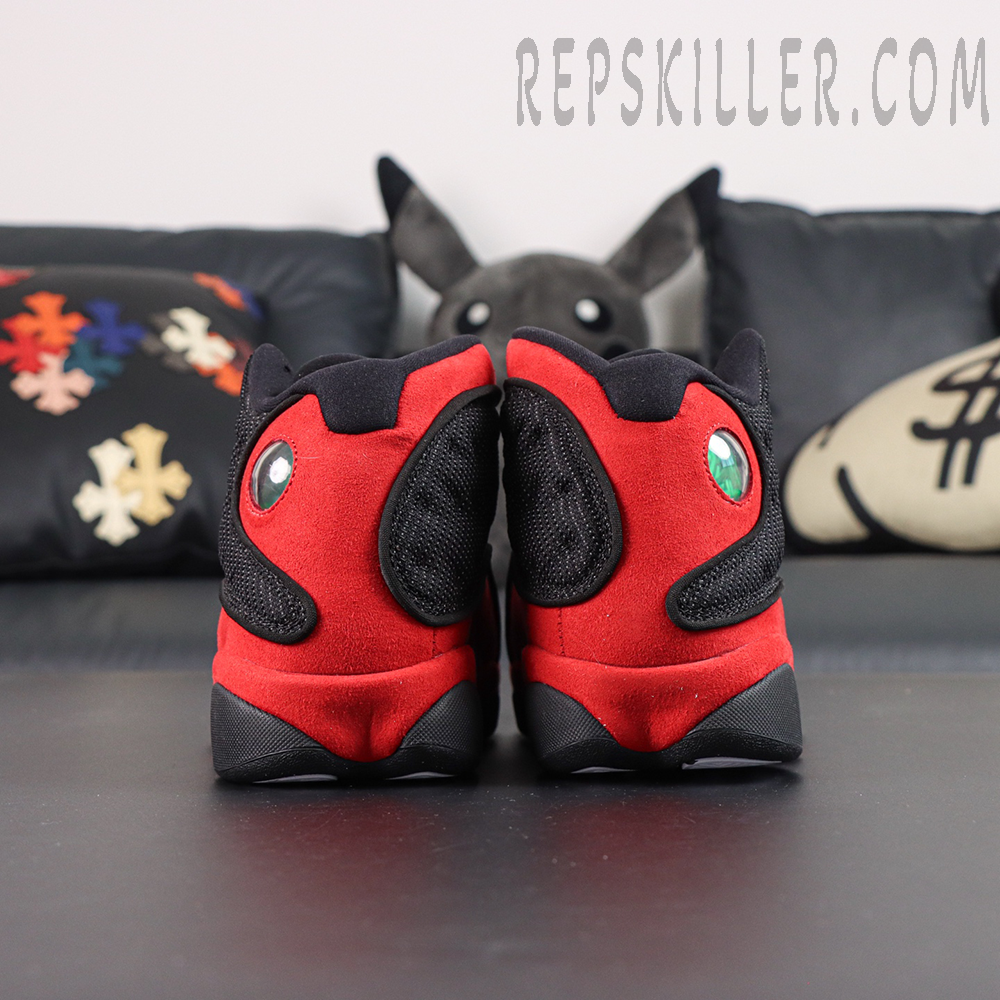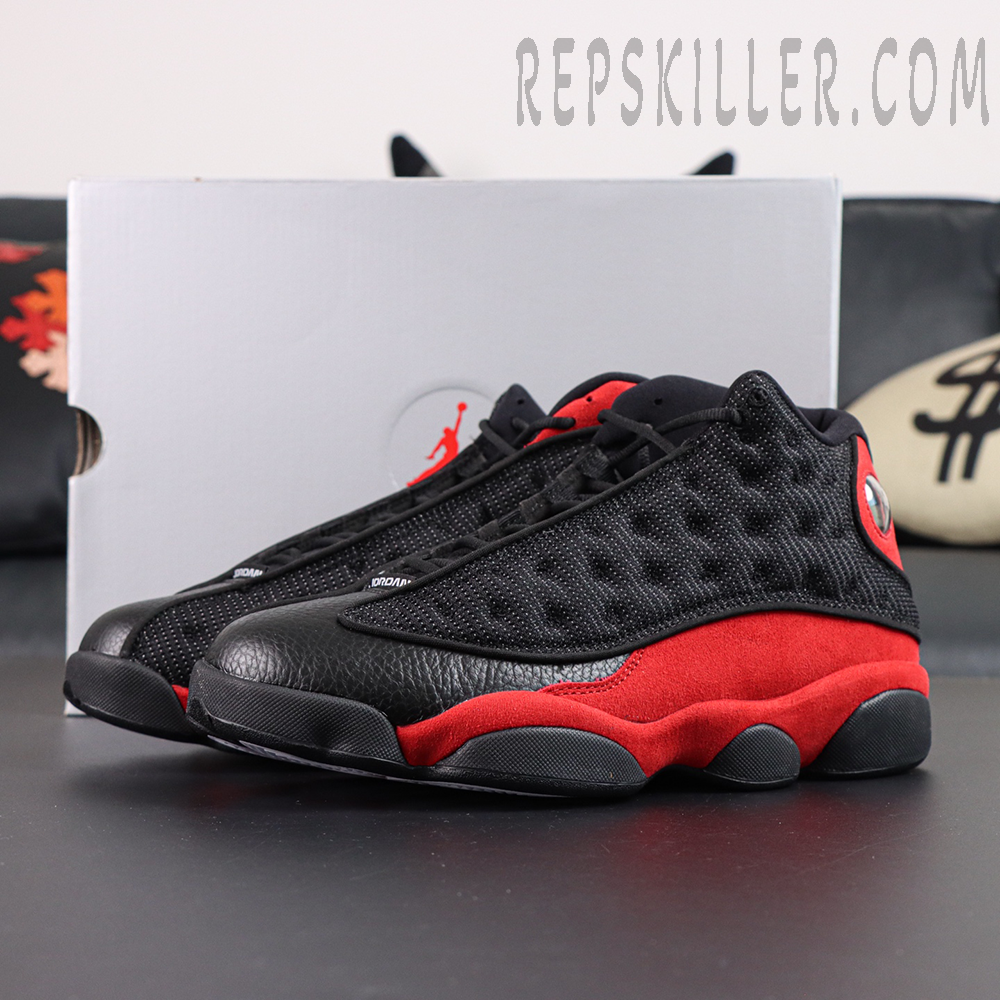 The Air Jordan 13 Retro GS ‘Bred’ 2017 reintroduces a classic from MJ’s playing days, tailored for younger athletes. This grade school edition brings back the beloved black and red colorway, featuring reflective 3M mesh overlays, black tumbled leather panels, and rich red suede wrapping the midsole and heel. Signature details like the holographic cat eye and claw-inspired outsole pay tribute to Jordan’s on-court agility. The 2017 version distinguishes itself with restored reflective detailing, absent in the 2013 release.