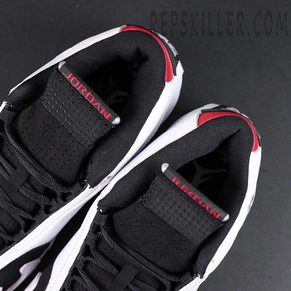 Crafted with smooth white leather upper, the sneaker is contrasted by black suede overlays on the toe, delivering a clean yet bold two-tone look. Signature details include a Ferrari-inspired Jumpman badge on the lateral collar, along with a crimson embroidered Jumpman logo on the toe box, adding subtle pops of color and heritage flair.