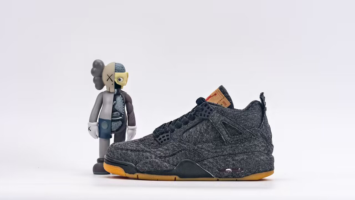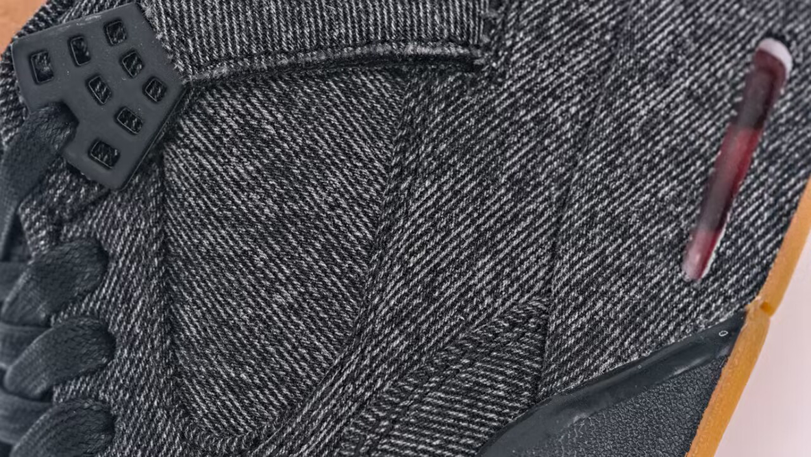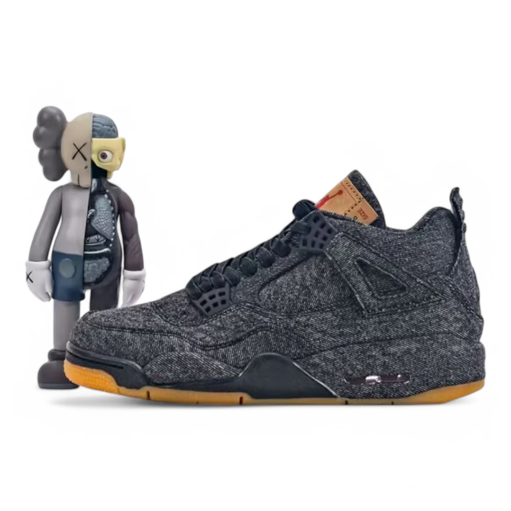 The Le x Air Jordan 4 “Black Denim” reimagines the iconic silhouette with rugged sophistication. Featuring a monochrome black Le denim upper, this design showcases tonal stitching, Le red tab branding, and co-branded tongue patches made from Le paper label. The gum rubber outsole contrasts subtly against the all-black profile, while visible Air units in the midsole maintain its legacy of comfort. Raw edges and reinforced overlays give the shoe a distinct lifestyle edge, fusing heritage style with streetwear exclusivity.