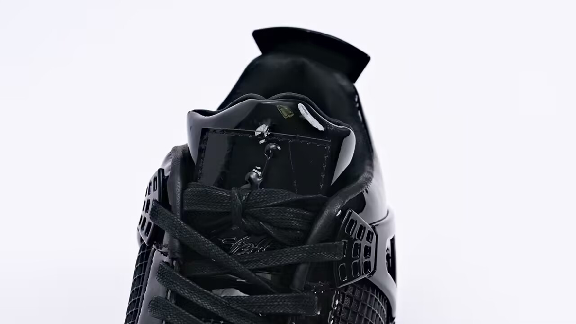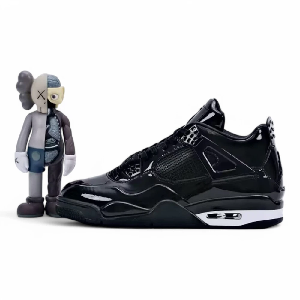 Despite its dressy exterior, the Air Jordan 4 Retro ’11Lab4 – Black’ does not compromise on comfort. It retains the classic Air Jordan 4 features, such as air units in the heel for superior cushioning and impact protection, and a padded tongue and ankle collar for enhanced support. The midsole, often rendered in the same glossy black as the upper, provides both stability and style.