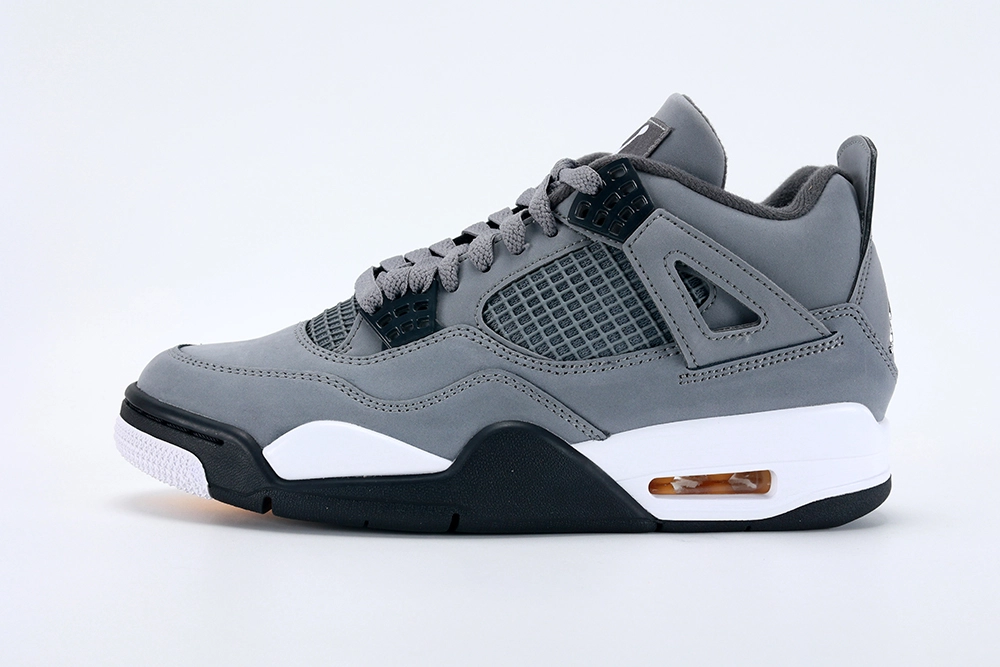 Re-released in August 2019, the Air Jordan 4 Retro ‘Cool Grey’ celebrates the iconic sneaker’s 30th anniversary in a true-to-form retro of a 2004 colorway. The Cool Grey nubuck upper is framed with a white midsole that houses a visible Nike Air unit, while black details line the outsole and lace loops. A hint of Varsity Maize appears on the tongue patch, Air bubble and outsole, while a chrome Jumpman logo adorns the back heel.