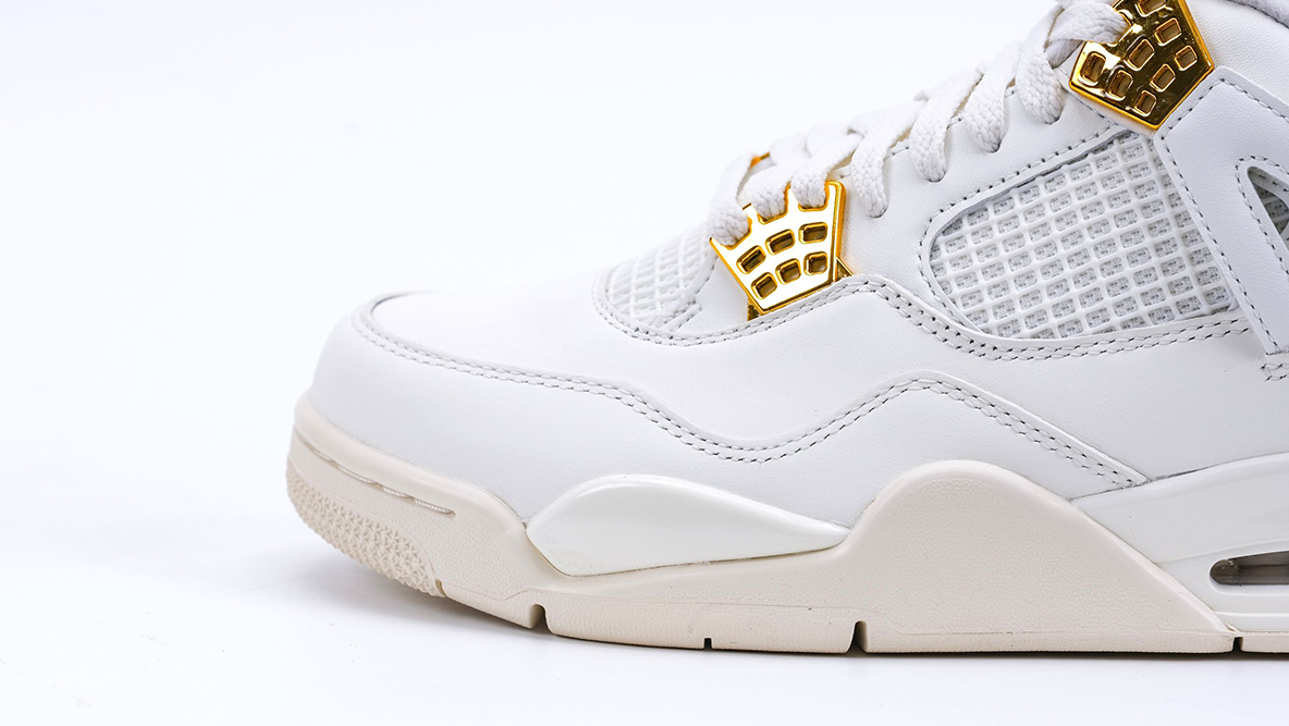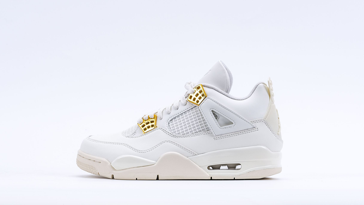 The Air Jordan 4 Retro ‘Metallic Gold’ is an elegantly minimalist rendition of one of Michael Jordan’s most iconic sneaker models. Released as part of a modern approach to the classic silhouette, the ‘Sail’ colorway features a monochromatic scheme that showcases the design’s clean lines and sophisticated structure, making it a versatile addition to any sneaker collection.