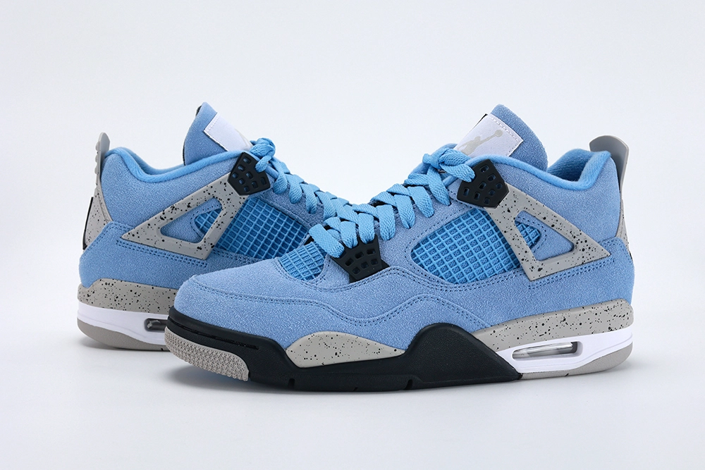 Jordan 4 Retro ‘University Blue’ brings collegiate energy to the iconic silhouette, fusing heritage style with premium craftsmanship. The upper is constructed from soft suede in a vibrant University Blue shade, contrasted by speckled Cement Grey accents on the eyelets and midsole for a classic finish. Mesh panels on the side and tongue promote airflow, while the foam tongue patch with woven tag adds nostalgic appeal. A visible Air-Sole unit and supportive TPU wings maintain the Jordan 4’s functional performance roots. Bold yet balanced, this colorway honors MJ’s legacy at UNC with modern street-ready flair.
