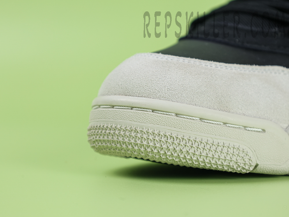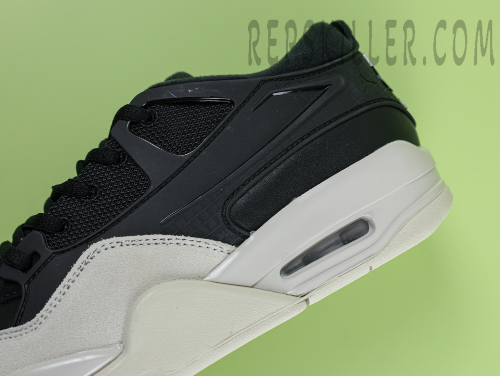 This Air Jordan 4 RM “Black / Light Bone” sneaker stands out with its unique black leather and textile upper design. The upper incorporates a black TPU cage structure that not only provides excellent support, but also enhances the overall sense of package. The front foot of the shoe is made of beige-white suede, which stands in sharp contrast to the black main body, further enriching the visual layering. The midsole is made of lightweight polyurethane and has a built-in Max Air shock absorber to ensure that the wearer enjoys a comfortable foot feeling every time he walks. At the same time, the shoe soles are made of rubber with a stiff pattern, providing excellent grip and wear resistance.