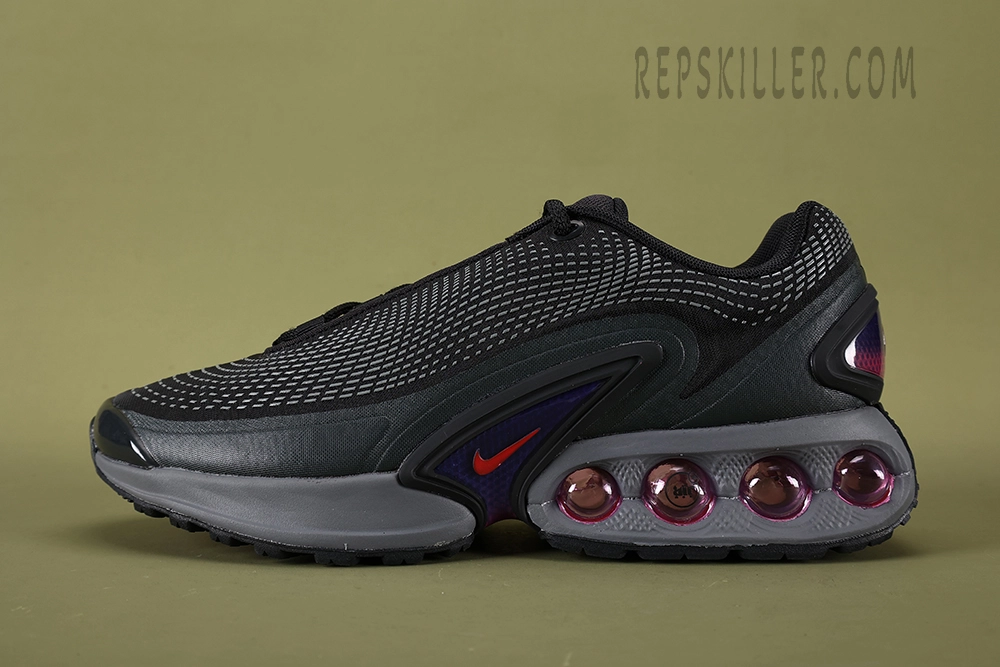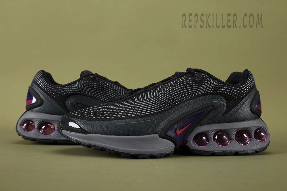 The Air Max DN ‘All Night’ replica features a sleek design inspired by city nightlife, with a predominantly black upper accented by reflective details that catch the light. Equipped with the classic Air Max cushioning for comfort, this sneaker is both stylish and functional. Its versatile look is perfect for evening wear, embodying a modern, urban vibe suitable for any casual outing.