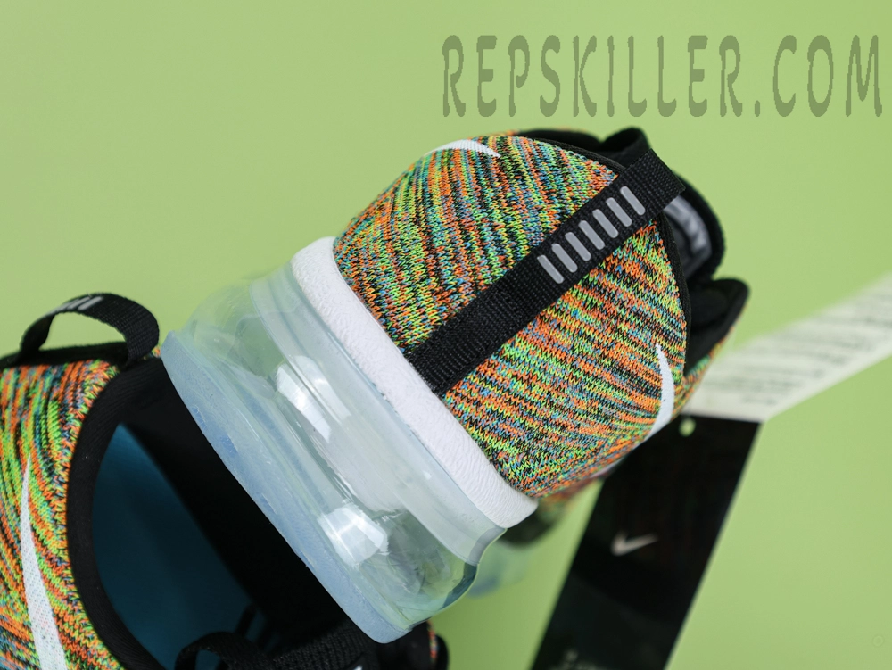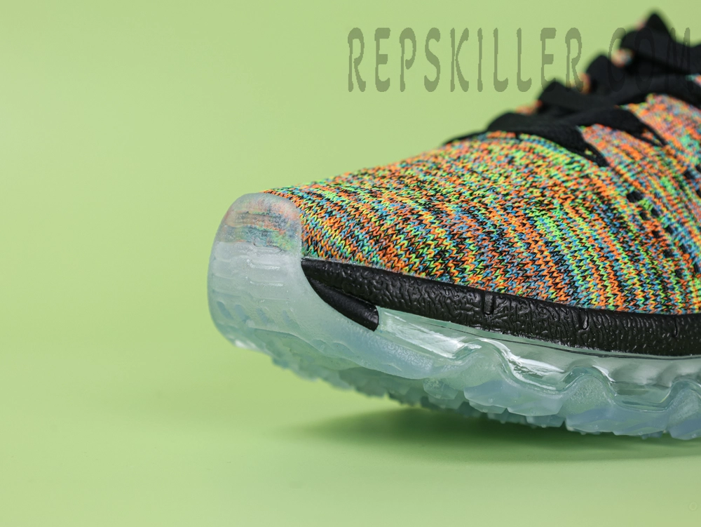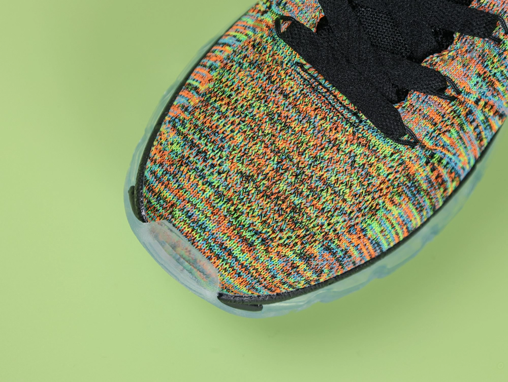 The Nike Air Max Flyknit ‘MultiColor’ is a running shoe that combines cutting-edge technology with dazzling color design. This shoe uses Flyknit technology to create a vamp that is light, breathable and highly fitting. The multi-coloured yarns on the surface of the shoes are woven together to display a unique visual effect, ensuring that each shoe has a unique color mix. At the same time, the full palm Air Max cushion on the sole provides excellent cushioning effect and ensures comfort when wearing for a long time. In addition, the design of the rubber outer soles enhances durability and grip strength, making them suitable for a variety of daily activities.