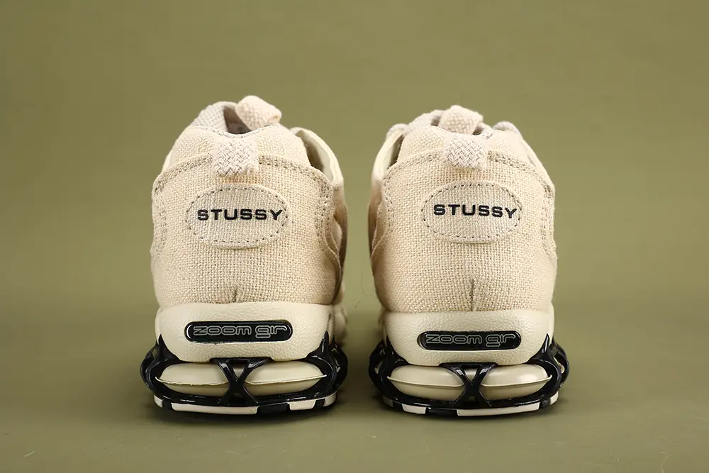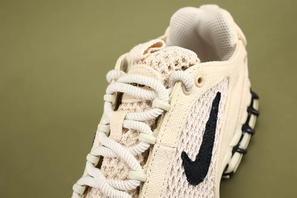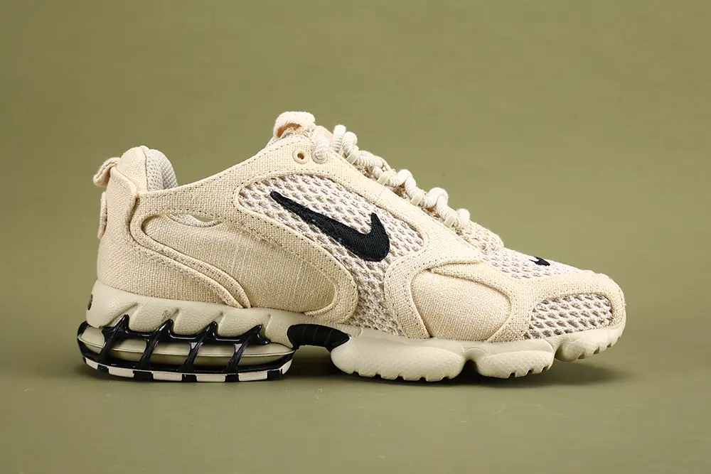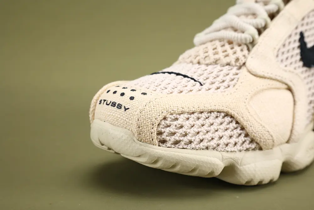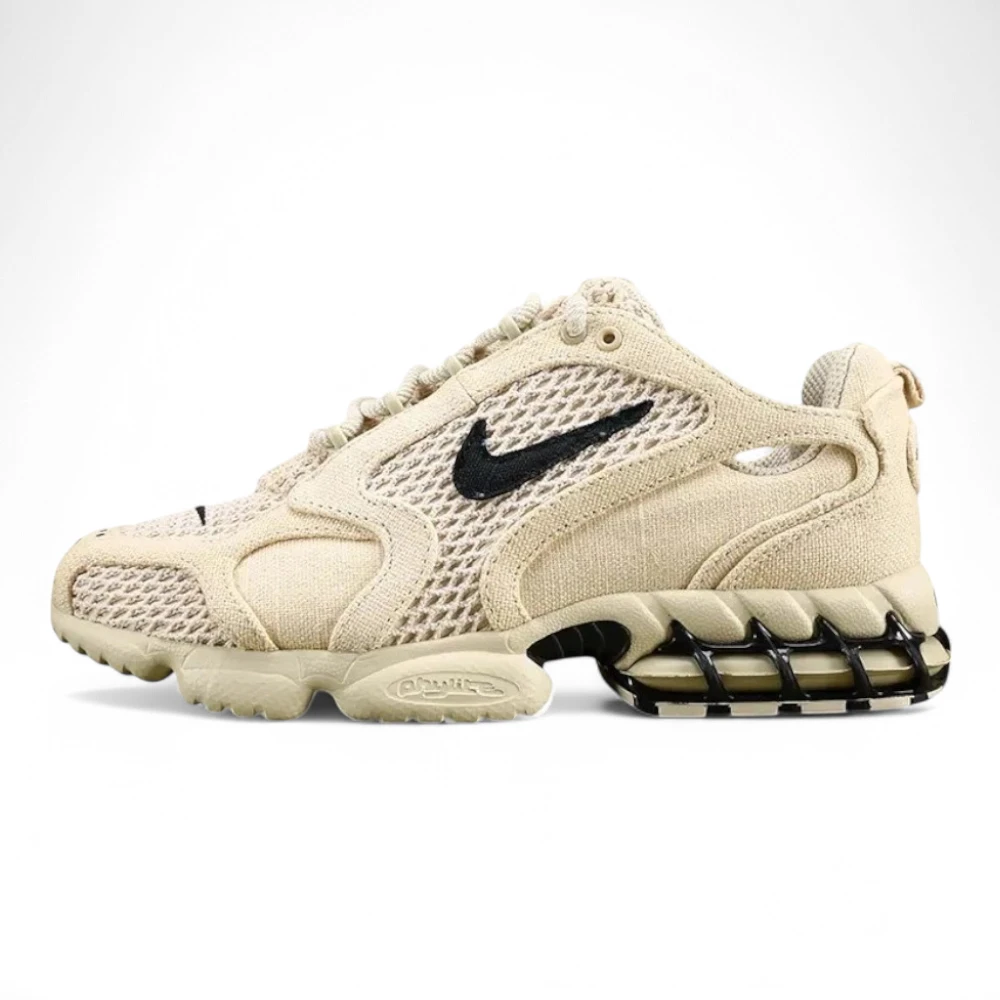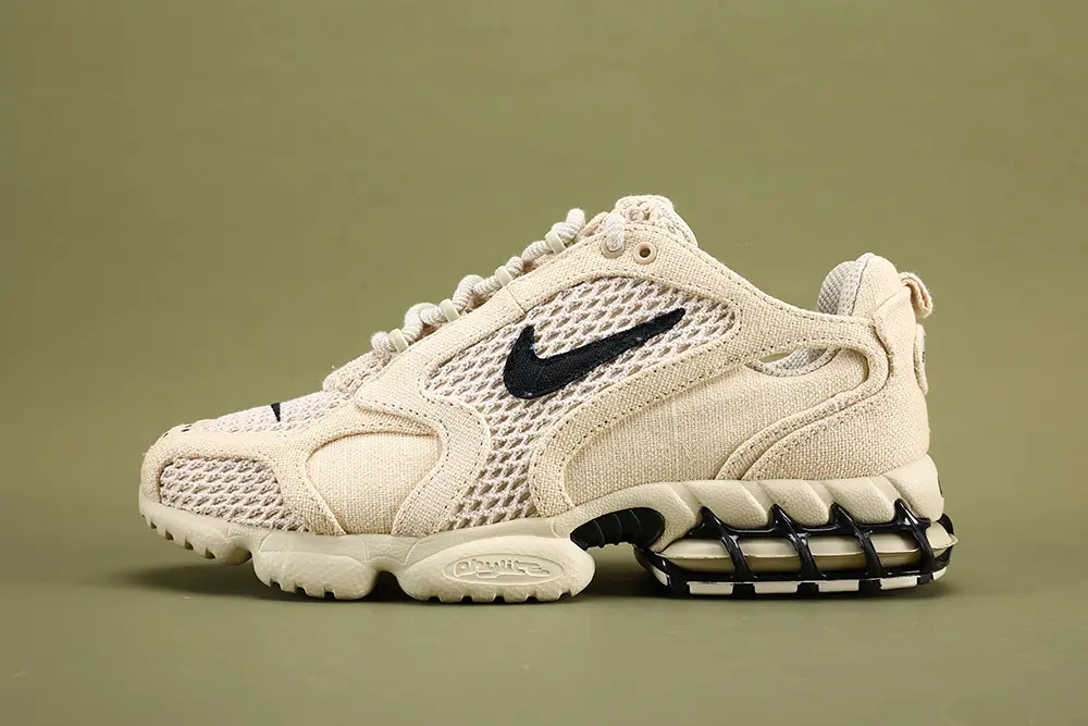 The Air Zoom Spiridon Cage 2 Stussy ‘Fossil’ replica combines vintage aesthetics with modern design. Featuring a breathable hemp-like woven upper in a soft “Fossil” beige tone, this sneaker offers a minimalist yet stylish look. The cage-like Zoom Air midsole provides excellent comfort and cushioning, while Stussy branding on the tongue and heel adds a touch of exclusivity. This collaboration seamlessly blends functionality with streetwear appeal, making it a standout choice for fashion-forward individuals.