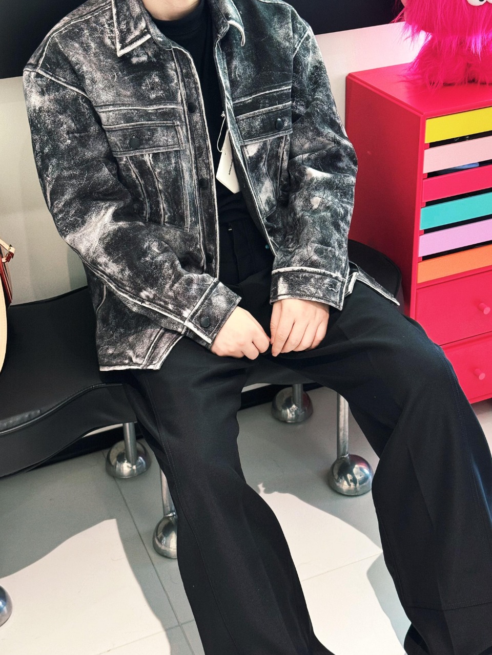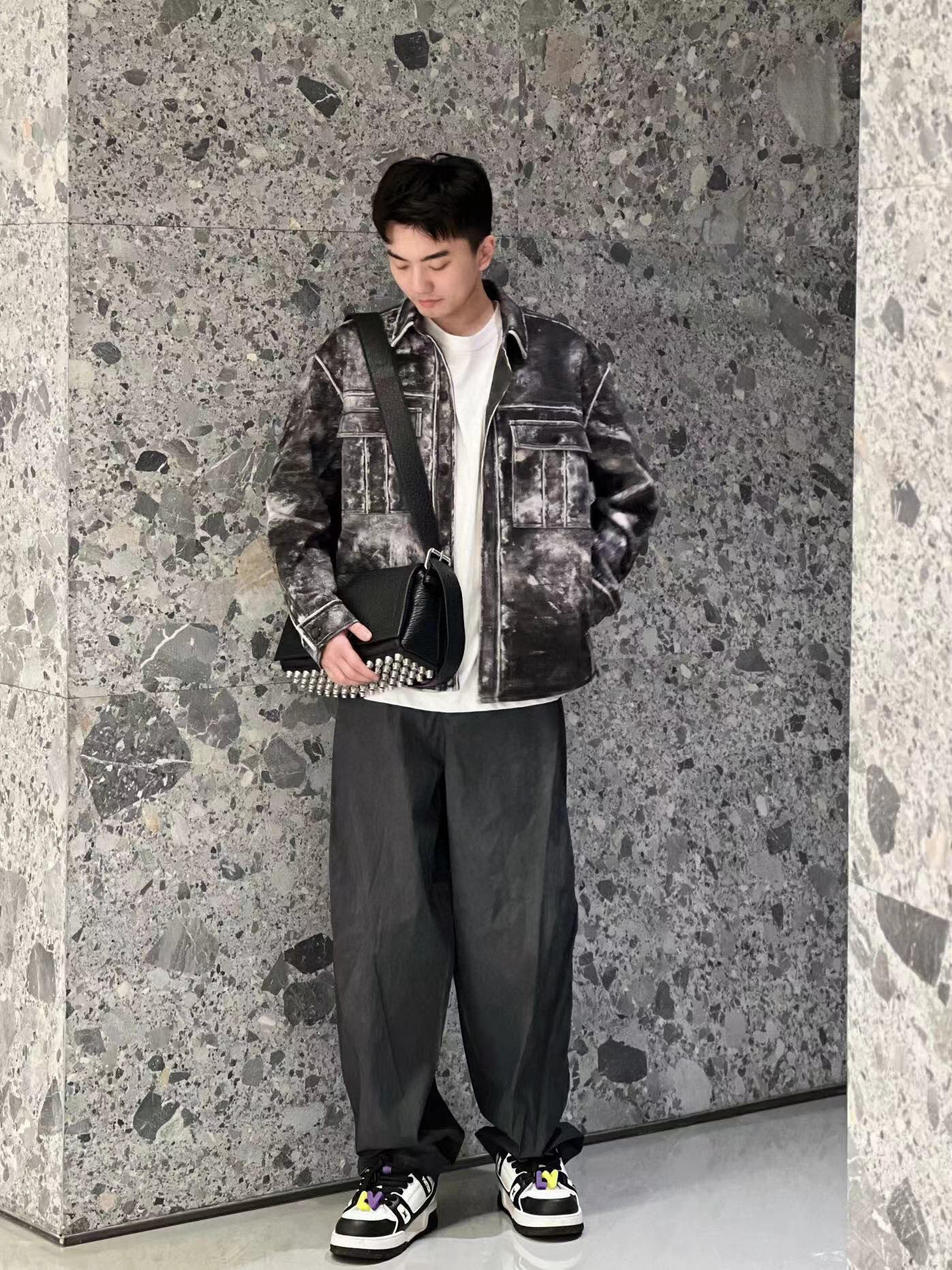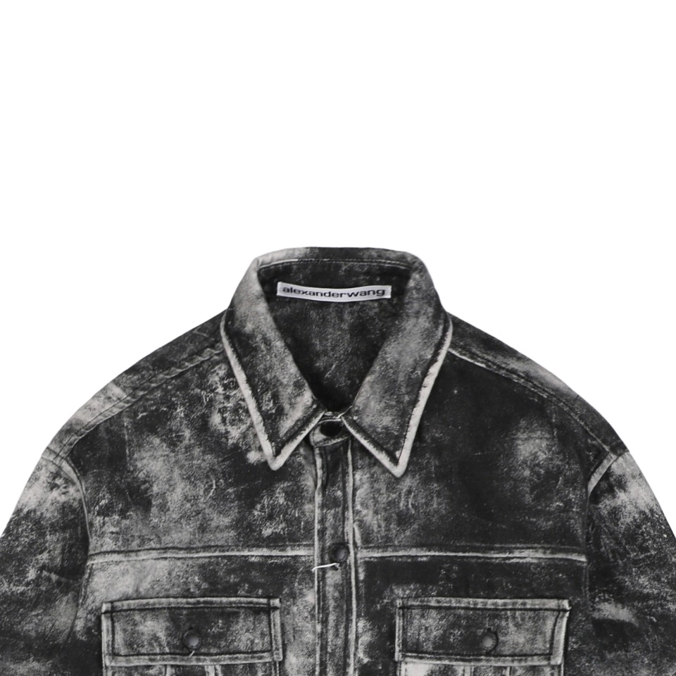 Alexander Wang Distressed Print Graphic Jacket is made of cotton kraft, which is thick and hard. Nonetheless, it excels at shaping body shape and shows excellent results. At the same time, this thick material has not affected its breathability, ensuring comfort when worn. The lining is made of synthetic polyester fabric, which has excellent wear resistance, wrinkle resistance and elasticity, which enhances the comfort of wearing and enhances product durability.