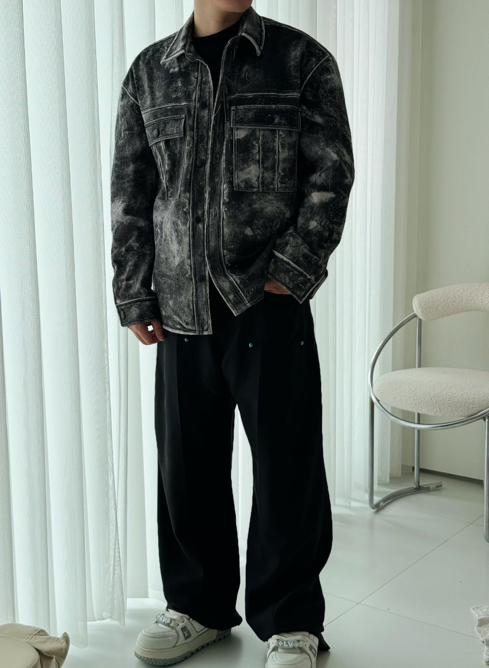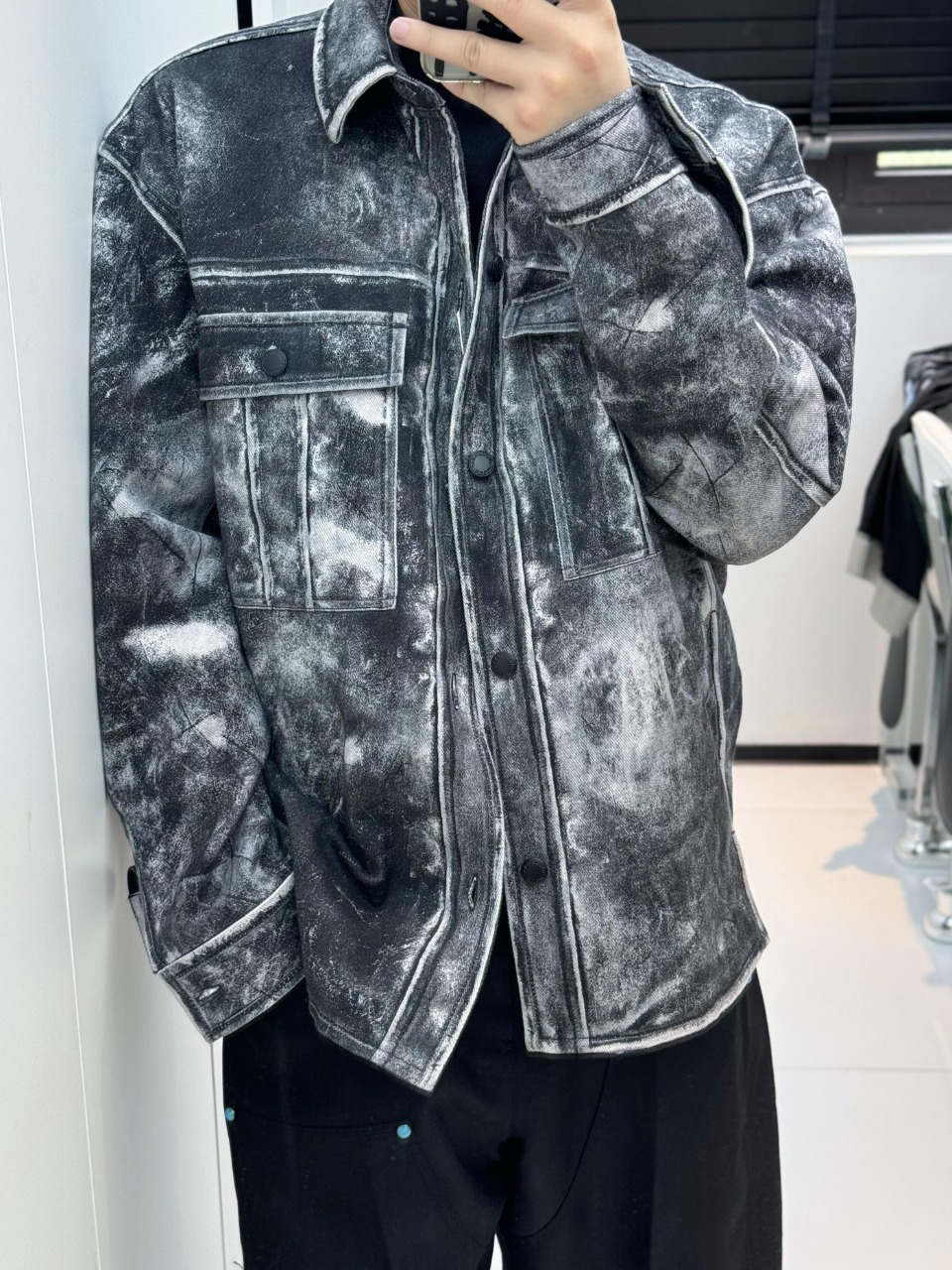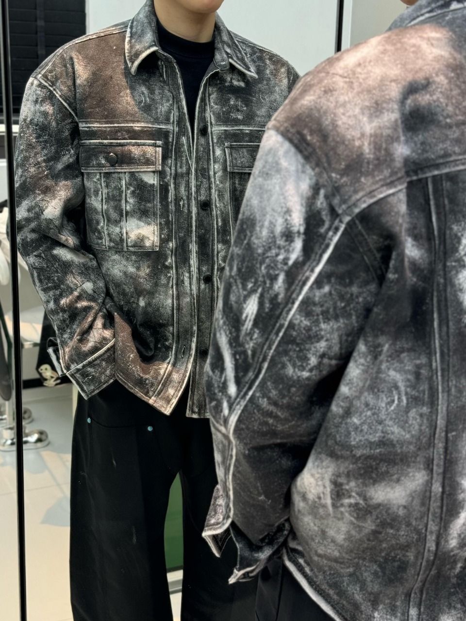 Alexander Wang Distressed Print Graphic Jacket is made of cotton kraft, which is thick and hard. Nonetheless, it excels at shaping body shape and shows excellent results. At the same time, this thick material has not affected its breathability, ensuring comfort when worn. The lining is made of synthetic polyester fabric, which has excellent wear resistance, wrinkle resistance and elasticity, which enhances the comfort of wearing and enhances product durability.