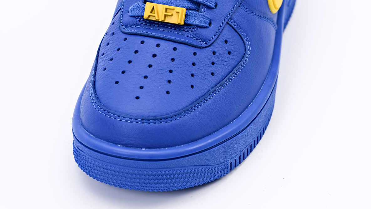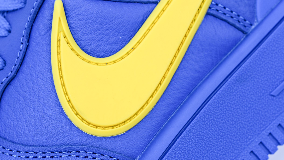 This sneaker features a luxurious all-blue leather upper that radiates premium quality and style. The vibrant ‘Game Royal’ blue is not only eye-catching but also versatile, capable of adding a pop of color to any outfit while maintaining a sleek and polished look. The design is highlighted by the oversized, protruding Swoosh that extends beyond the heel, a signature touch from AMBUSH that adds a futuristic edge to the iconic Air Force 1 profile.