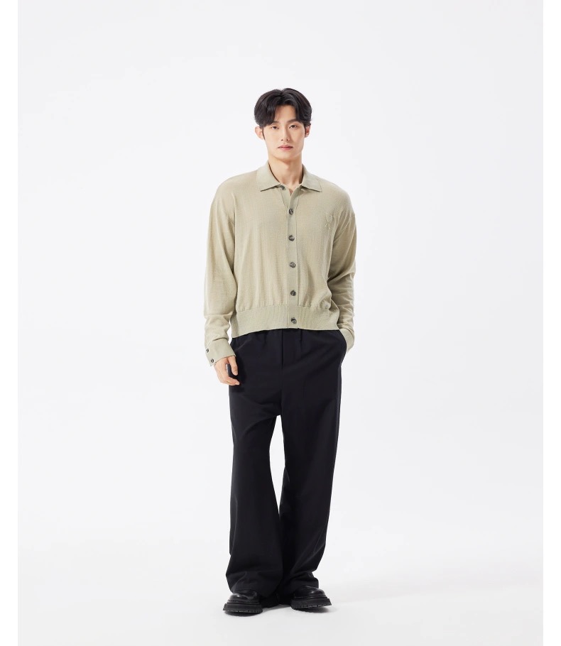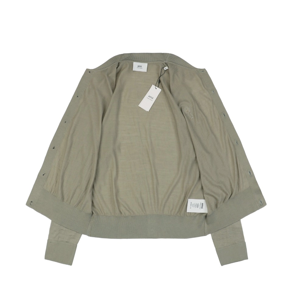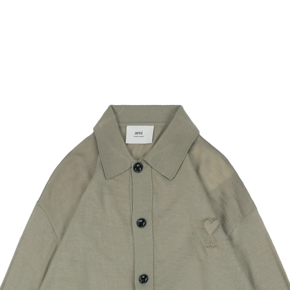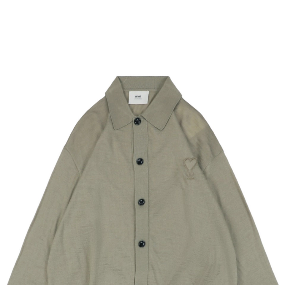 Ami Embossed Heart Embroidery Basic Polo Sweater Green made of 100% pure cotton wool material. This material is very popular in autumn and winter because of its elegant touch and excellent heating properties. The embroidery process of the chest of the sweater gives the fabric a unique visual effect through fine cutting, bordering, splice and folding techniques. The fine decorative flower sewing lines display a textured and relief effect on the surface, enhancing the decorative and artistic sense of the garment. At the same time, these elements also enrich the layered and three-dimensional feel of the fabric, further enhancing the overall texture of the garment.