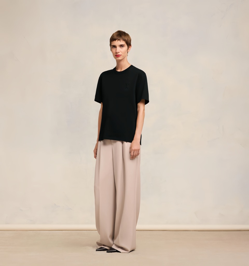 Ami Heart Logo Embossed T-Shirt features an embossed heart “A” logo on the chest, adding subtle texture and depth while maintaining a refined minimalist aesthetic. Crafted from premium cotton fabric, it ensures a soft, breathable, and comfortable fit for everyday wear. The standard fit with a classic crewneck design offers a clean and versatile silhouette, making it an essential piece for both casual and urban styling. Whether paired with jeans, tailored trousers, or layered under a blazer, this T-shirt embodies Ami’s signature blend of Parisian elegance and contemporary simplicity.