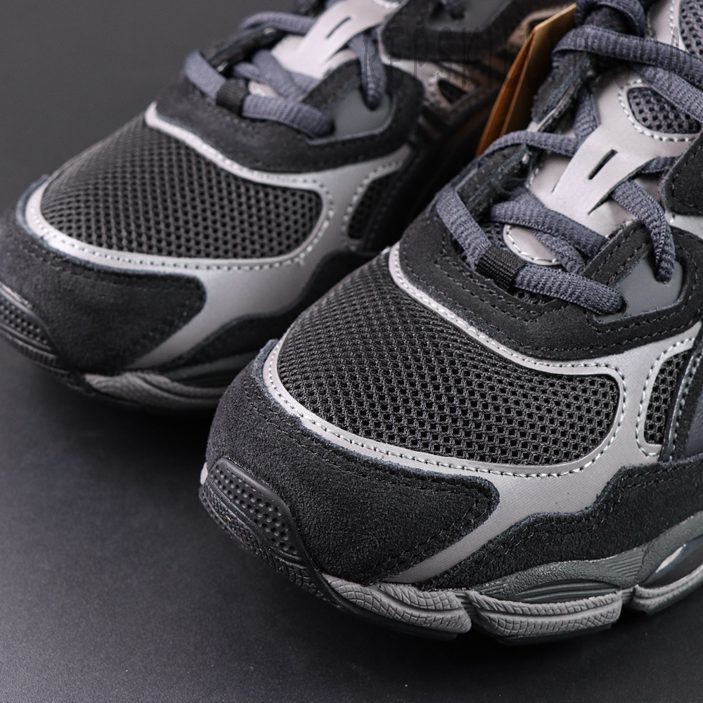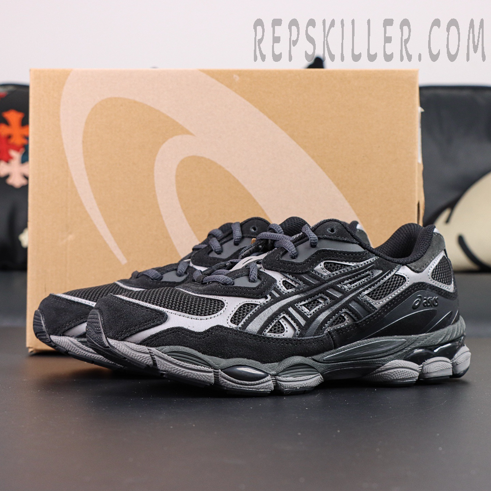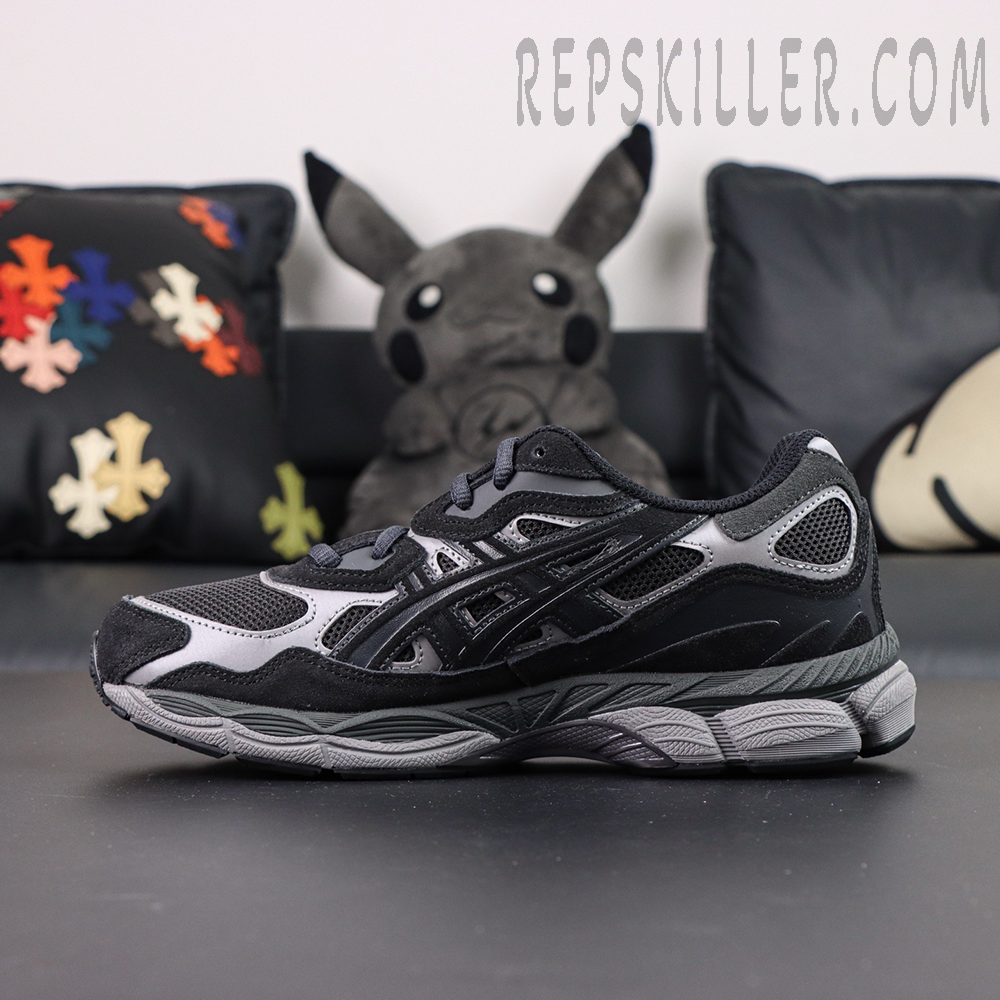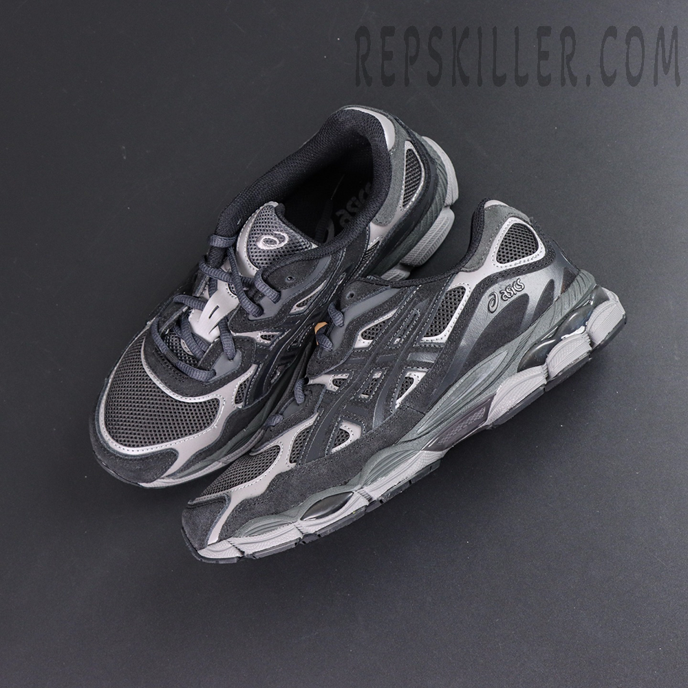 The ASICS Gel NYC ‘Graphite Grey Black’ gives the lifestyle runner a sleek, performance-inspired look. It features a breathable black mesh upper with gunmetal synthetic overlays and a black suede mudguard for depth and texture. Borrowing its tooling from the Gel-Cumulus 16, the shoe uses a FLYTEFOAM midsole with FLUIDRIDE cushioning and visible Gel inserts in the forefoot and heel. A segmented rubber outsole provides smooth transitions and long-lasting traction, blending comfort, durability, and modern style.