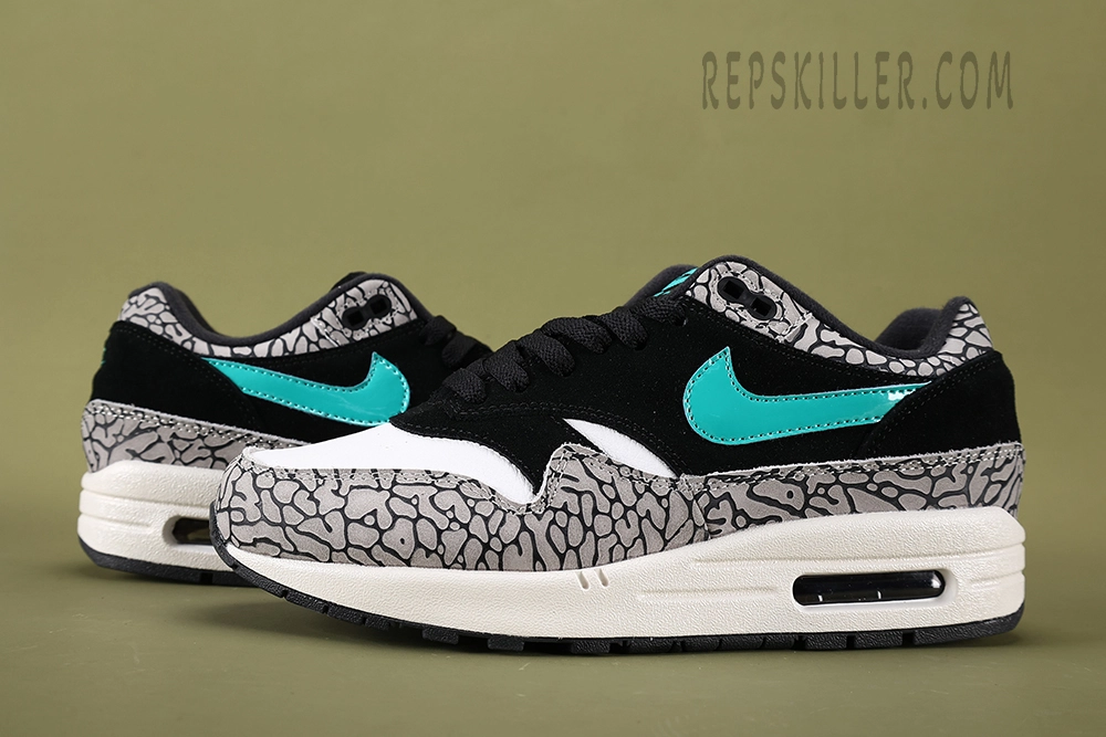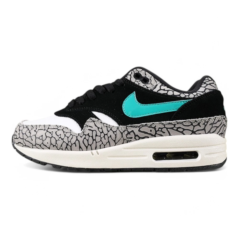 The Atmos x Air Max 1 Retro ‘Elephant’ 2017 is a celebrated collaboration between Nike and the Japanese retailer Atmos. Originally released in 2007 and reissued in 2017 after winning Nike’s “Vote Back” campaign, this sneaker features a striking design with black and white leather uppers. Its most distinctive elements are the elephant print overlays on the mudguard and heel, inspired by the iconic Air Jordan 3. Accentuated by a vibrant jade-colored Swoosh, the shoe blends classic aesthetics with bold patterns. Renowned for its unique style and limited availability, it’s a coveted piece among sneaker enthusiasts.