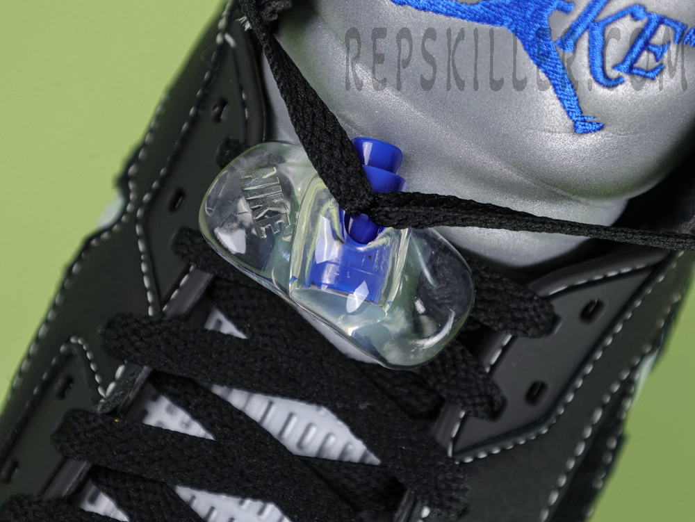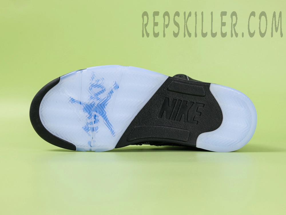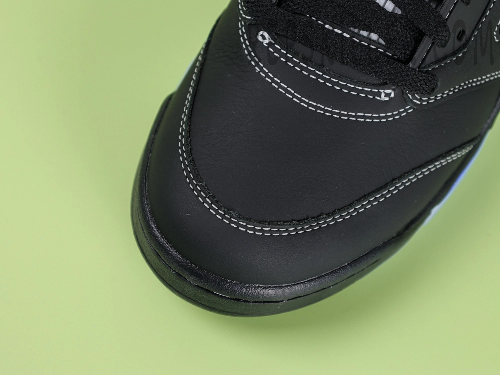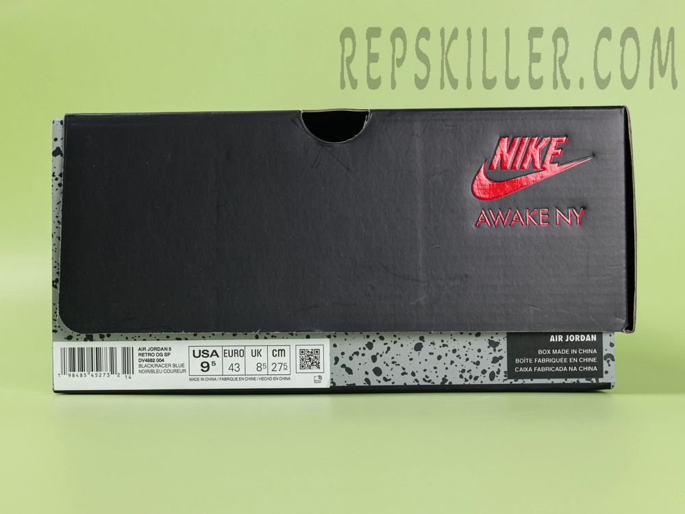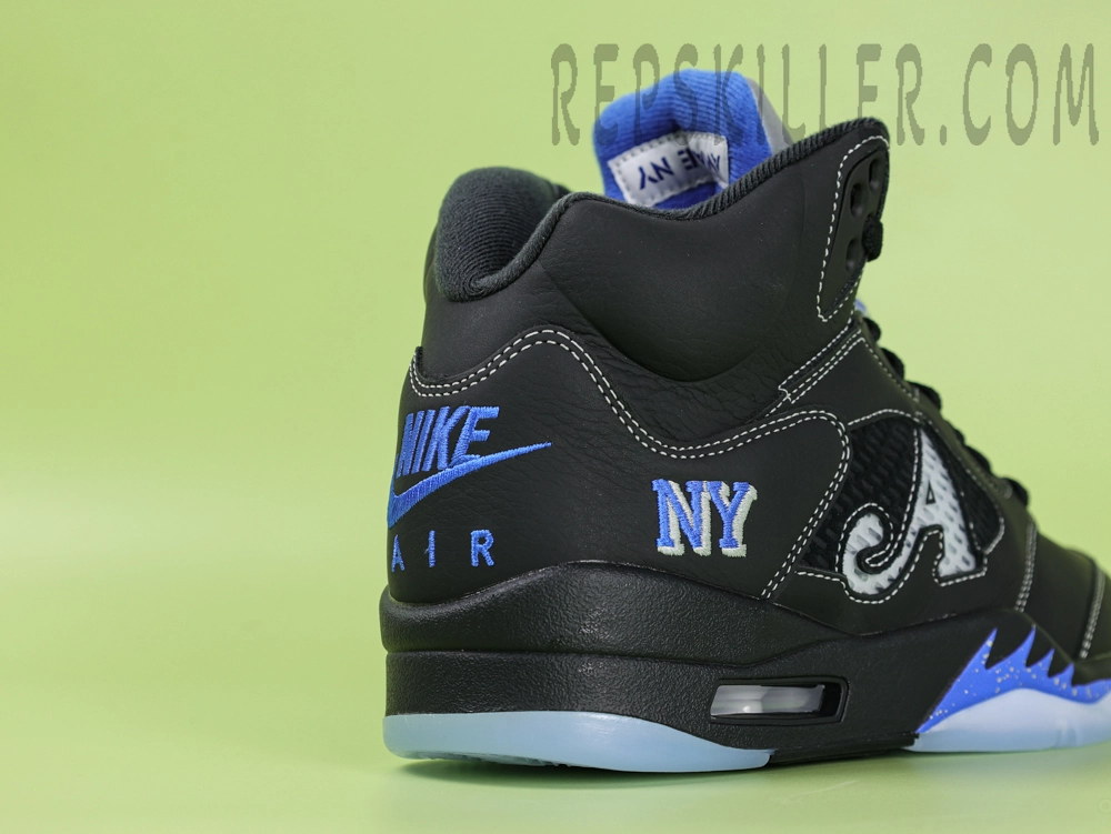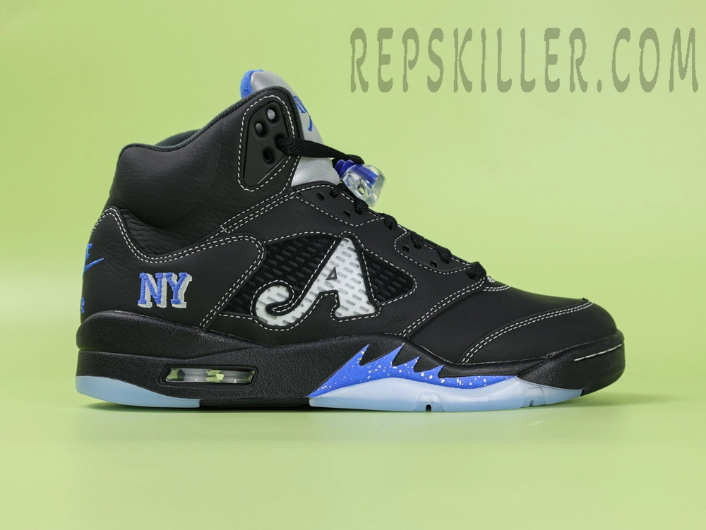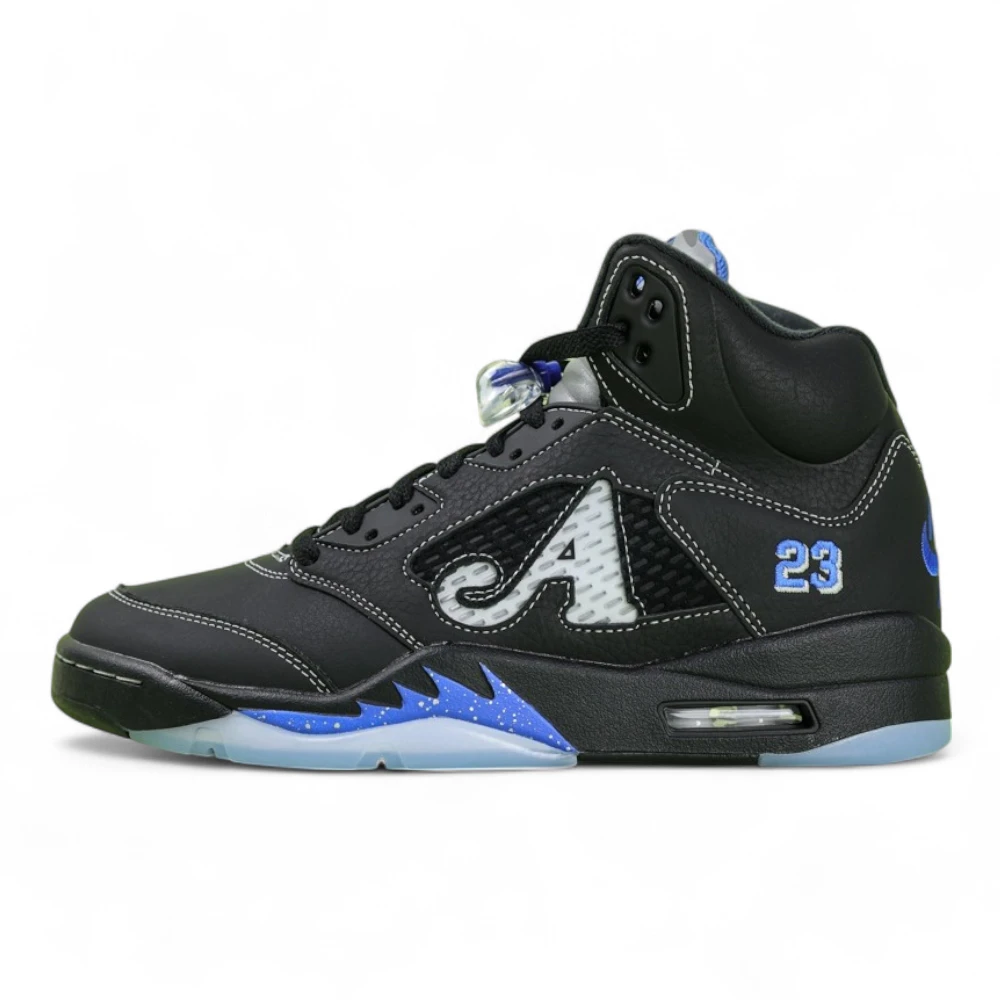 The Awake NY x Air Jordan 5 Retro ‘Black Racer Blue’ revives the iconic silhouette with a fresh injection of NYC street heritage. Featuring sleek black leather uppers, translucent mesh panels, and bold “A” branding on the sides, this collaboration delivers a unique edge. Bright Racer Blue accents on the jagged midsole and tongue lining contrast against the dark upper, while reflective details and an icy outsole round out this expressive, performance-rooted design.