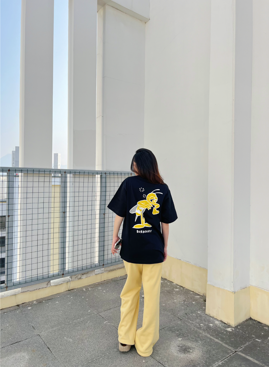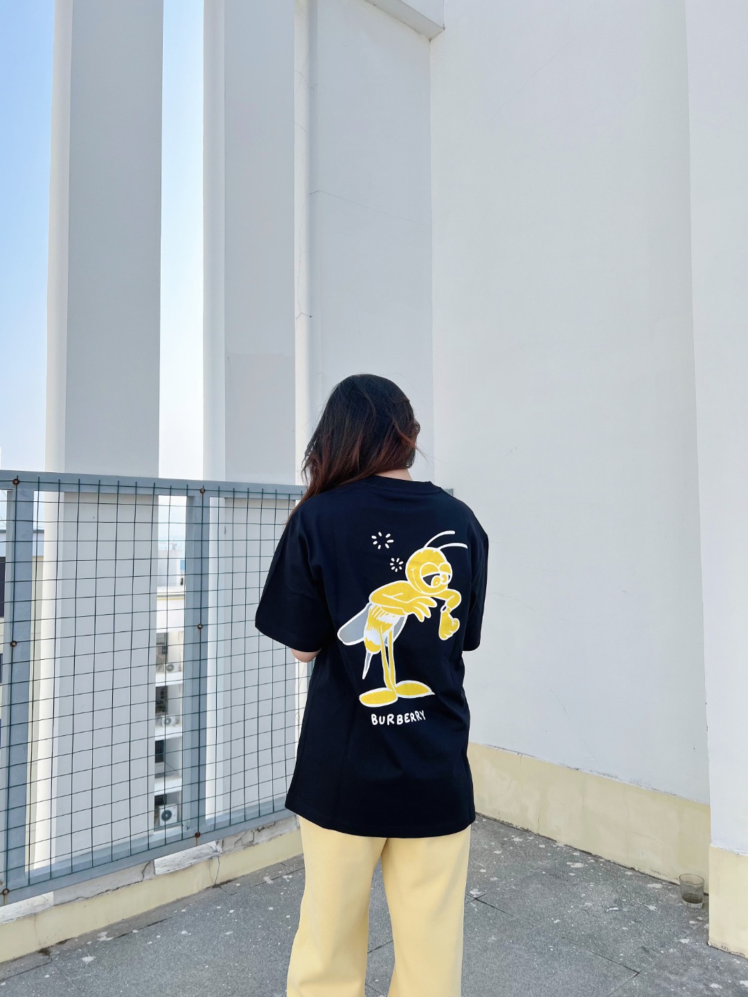 The BBry Cartoon Bee Flocked Print T-Shirt cleverly combines classic British style with playful cartoon elements to show a unique fashion charm. Made of selected high-quality cotton fabrics, they feel soft and comfortable. At the same time, the delicate texture process gives the pattern a more multidimensional and rich texture. The shirt design is simple and stylish, and the loose print is suitable for various styles, making it easy to create a casual and sophisticated look. The iconic elements of BBry on the inside of the shirt collar understate the brand’s temperament.
