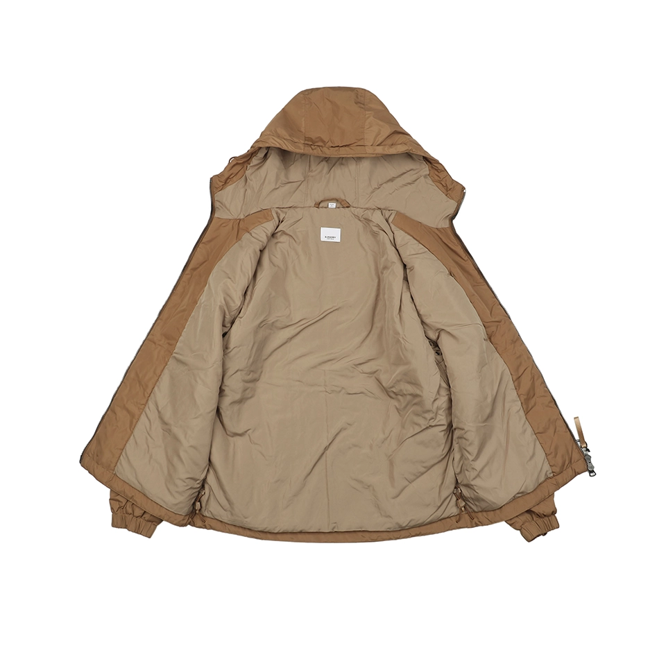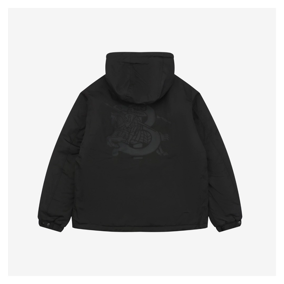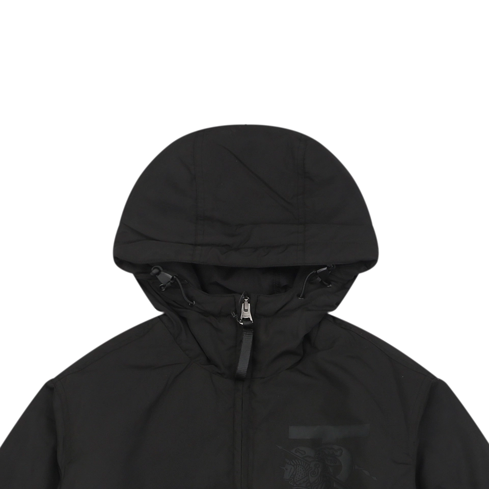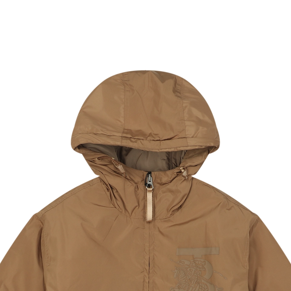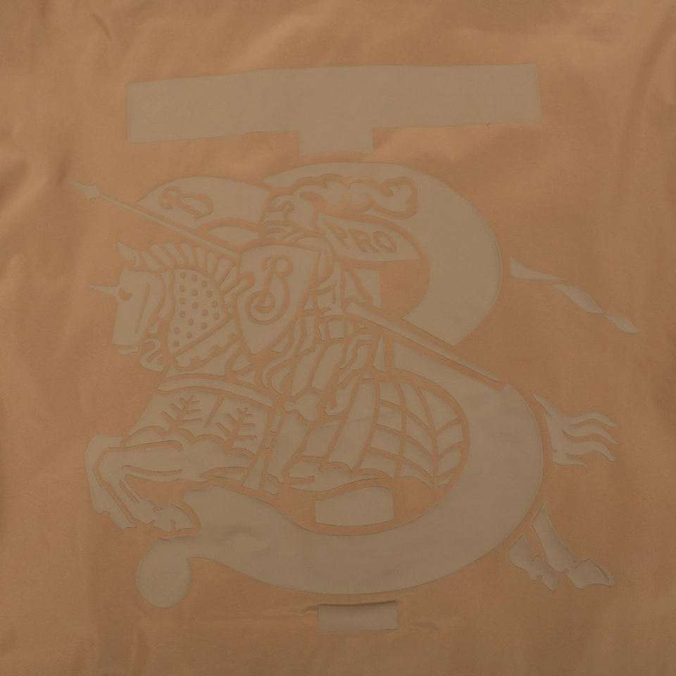 The BBry BT Equestrian Knight Hooded Jacket blends urban minimalism with heritage-inspired detailing. Available in both camel and black, this windbreaker showcases a tonal BT monogram and mounted knight graphic subtly printed on both chest and back. Crafted from lightweight, water-resistant nylon, it features an adjustable drawstring hood, two zip pockets, and a full front zip for everyday functionality and understated luxury.