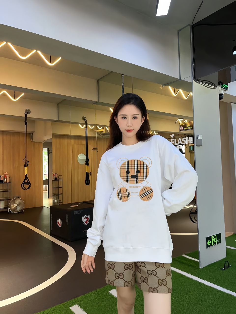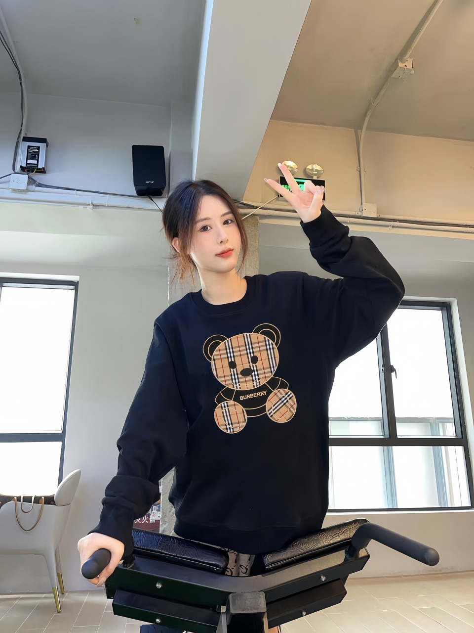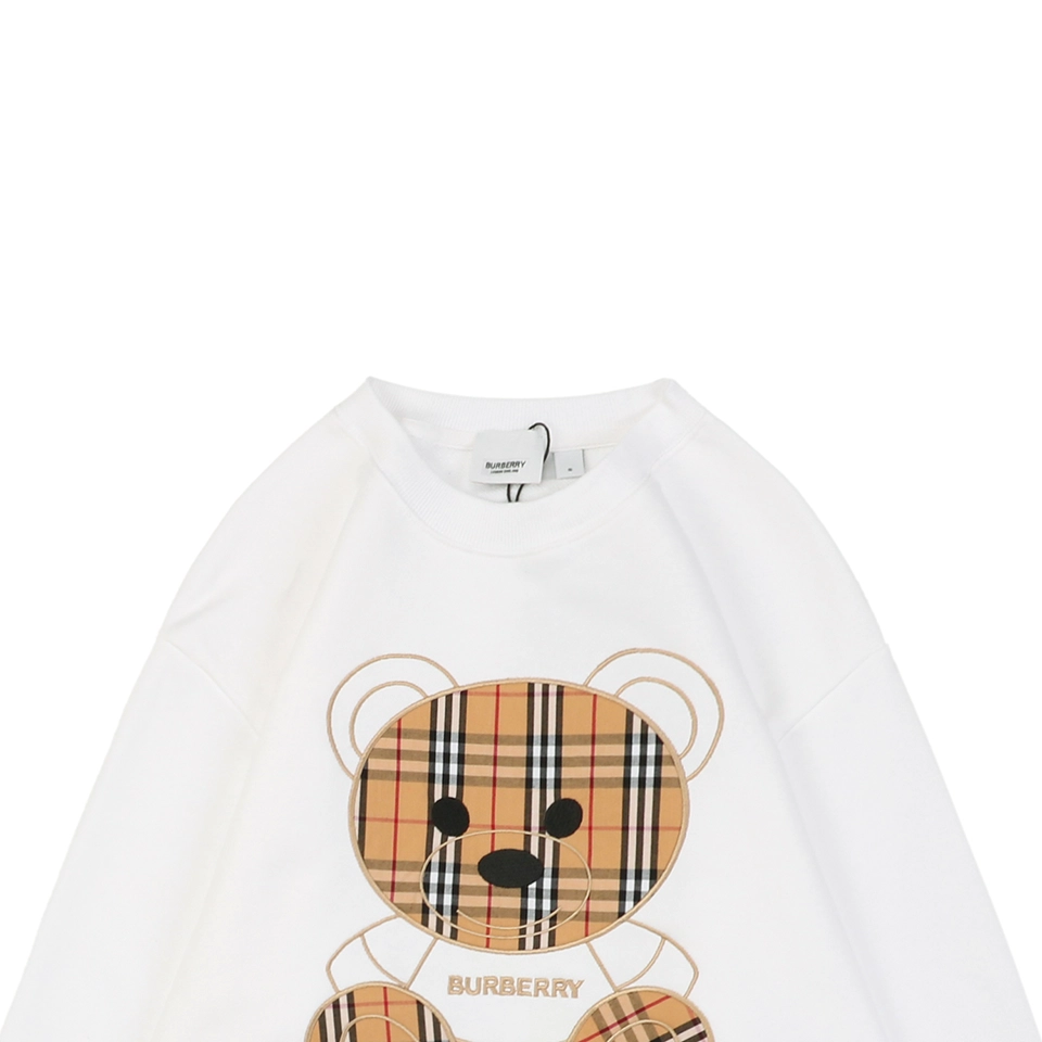 The BBry Check Bear Embroidery Crewneck Sweatshirt merges classic British heritage with playful contemporary design. Available in both white and black, it showcases a standout teddy bear motif crafted from the signature BBry check pattern. The oversized bear sits centered on the chest, exuding charm and visual impact. Made from soft, durable cotton, this sweatshirt offers a relaxed fit with ribbed cuffs and hem, ideal for casual layering or standout streetwear looks.