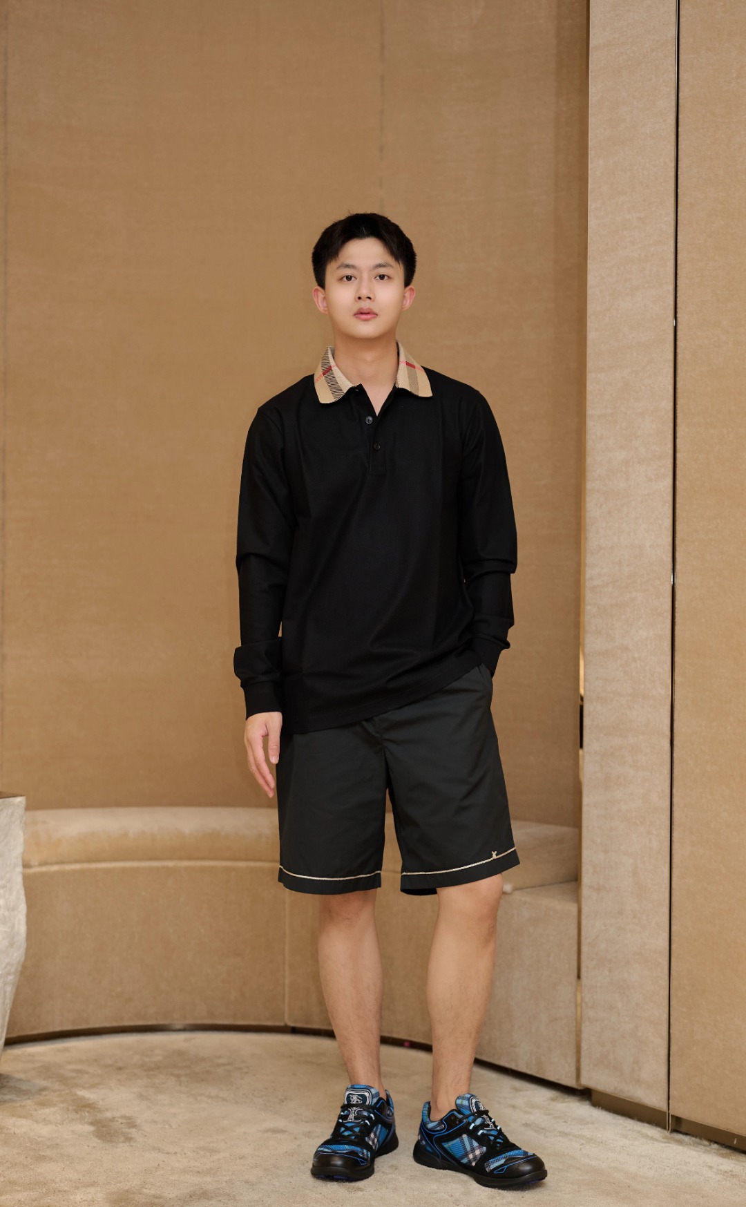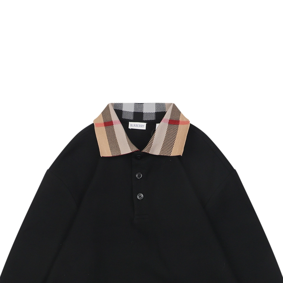 The BBry Check Collar Polo Shirt combines clean minimalism with a nod to British heritage. Made from premium cotton in a sleek black finish, the design is defined by its iconic vintage check collar that adds contrast and unmistakable identity. Ribbed cuffs and a classic placket complete this versatile piece, ideal for layering or stand-alone wear.