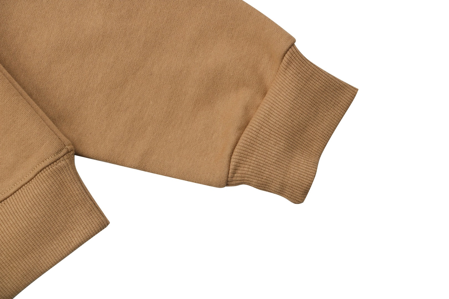 Designed with a padded hood interior rather than a single-layer structure, the hoodie delivers improved warmth and comfort. Leather details at the drawcord tips, copper eyelets, and branded hardware enhance durability while adding a touch of luxury. The cuffs and hem use 1×1 pure-cotton rib knit, custom-dyed to match the body color for a clean, unified look.