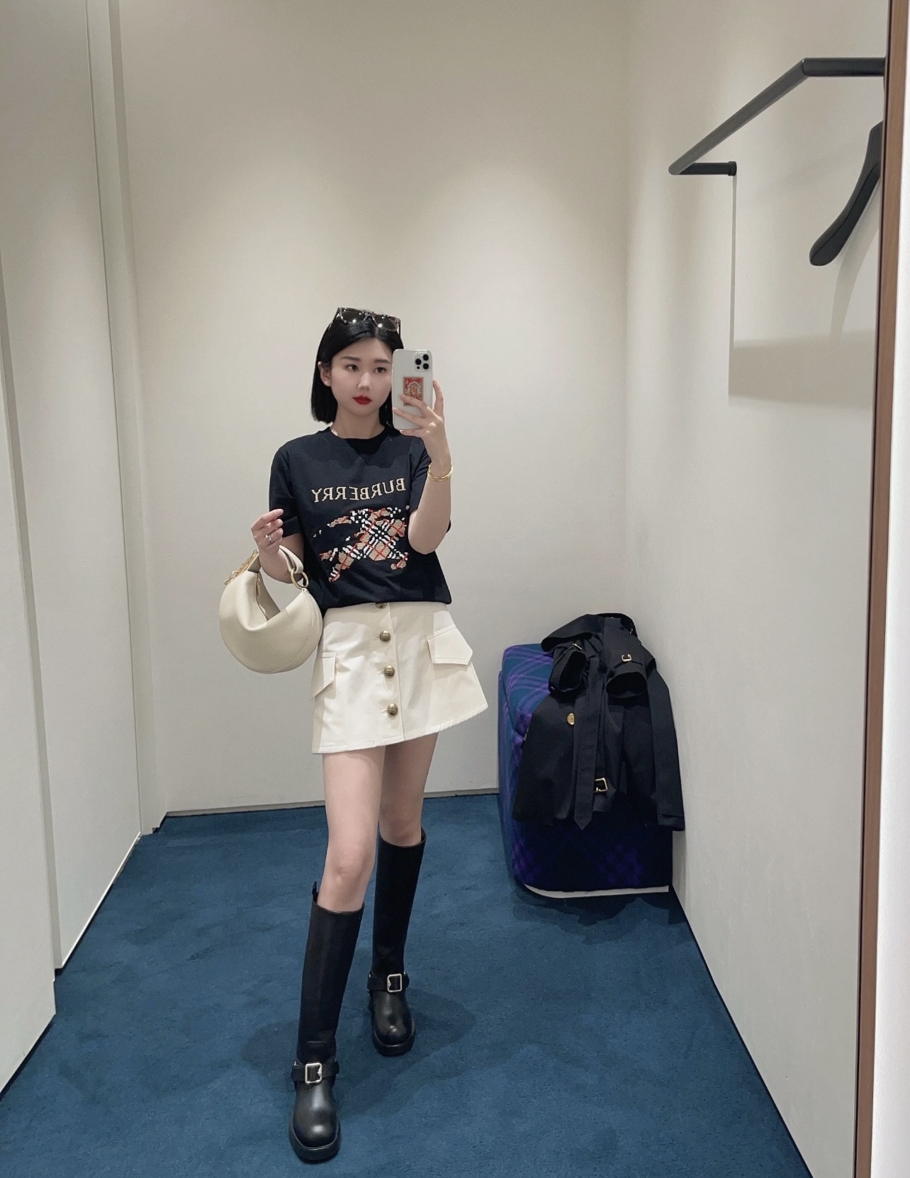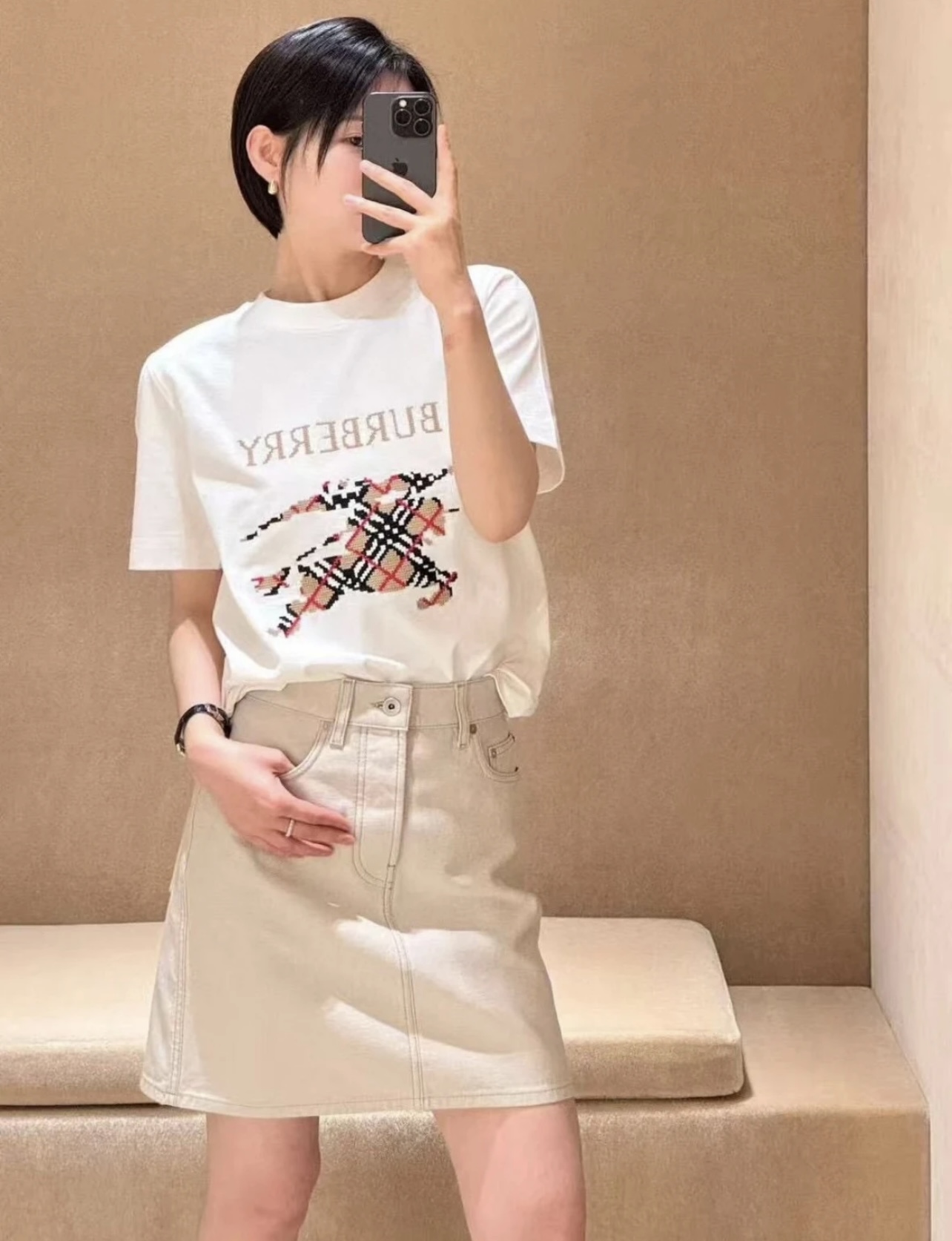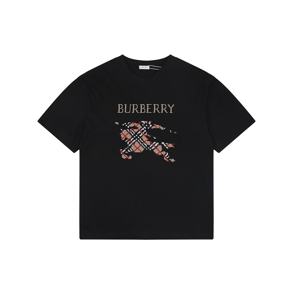 The BBry Cross Stitch Check Equestrian Knight Logo Embroidered Washed Cotton T-Shirt reinterprets the brand’s iconic heritage with a unique handcrafted-inspired aesthetic.