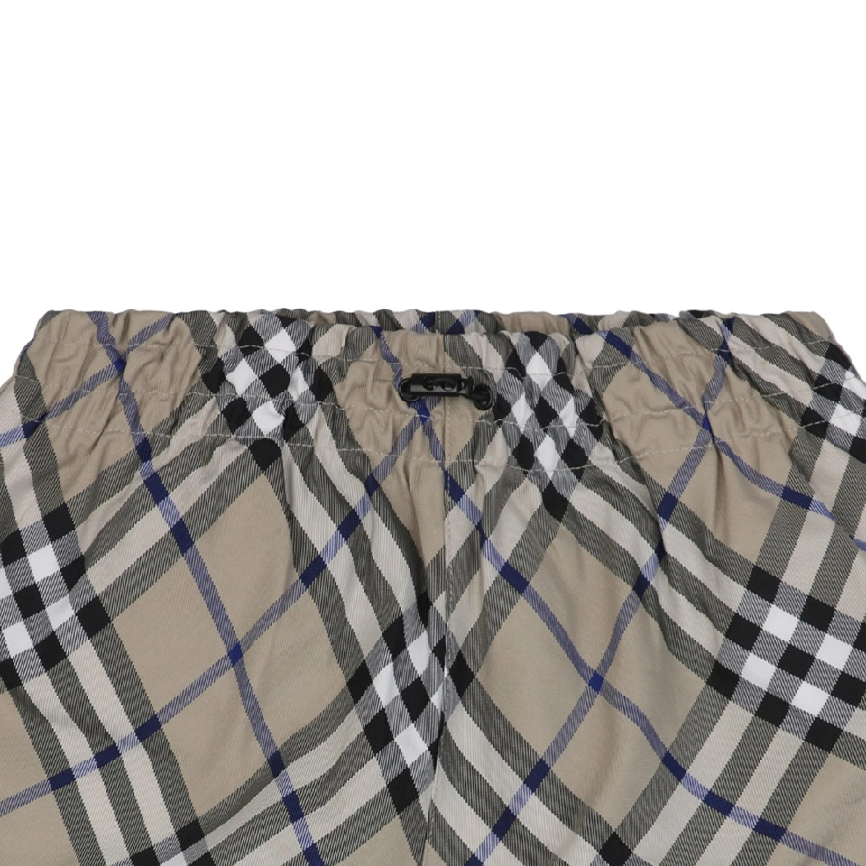 The BBry Diagonal Check Knight Patch Shorts combine a classic check aesthetic with a bold twist—rotated diagonally for a dynamic, modern look. Cut from lightweight woven fabric, they offer a breathable structure and effortless comfort. A signature embroidered knight crest patch on the back pocket brings heritage contrast to the pattern, while the elastic waistband ensures easy, relaxed wear throughout summer.