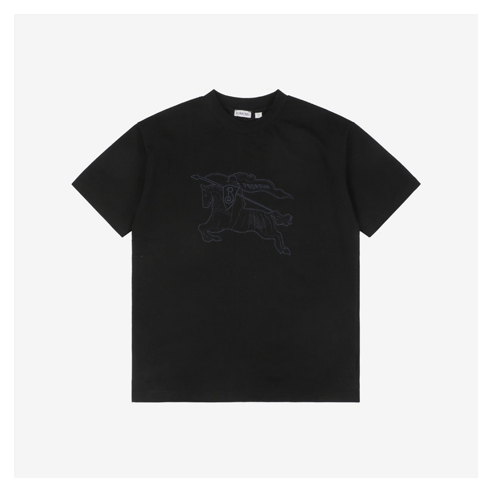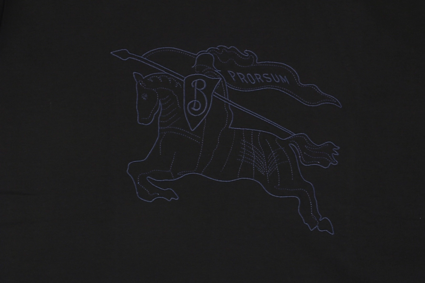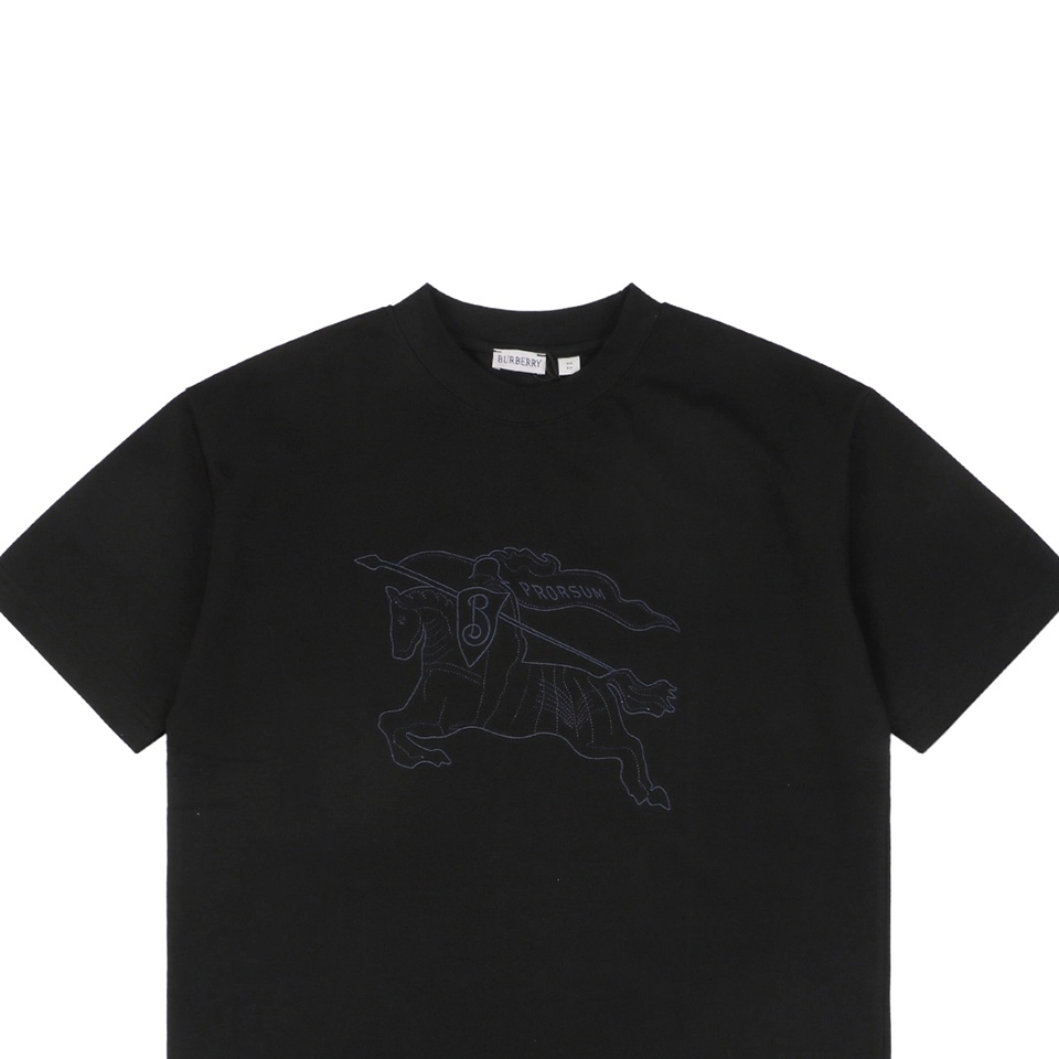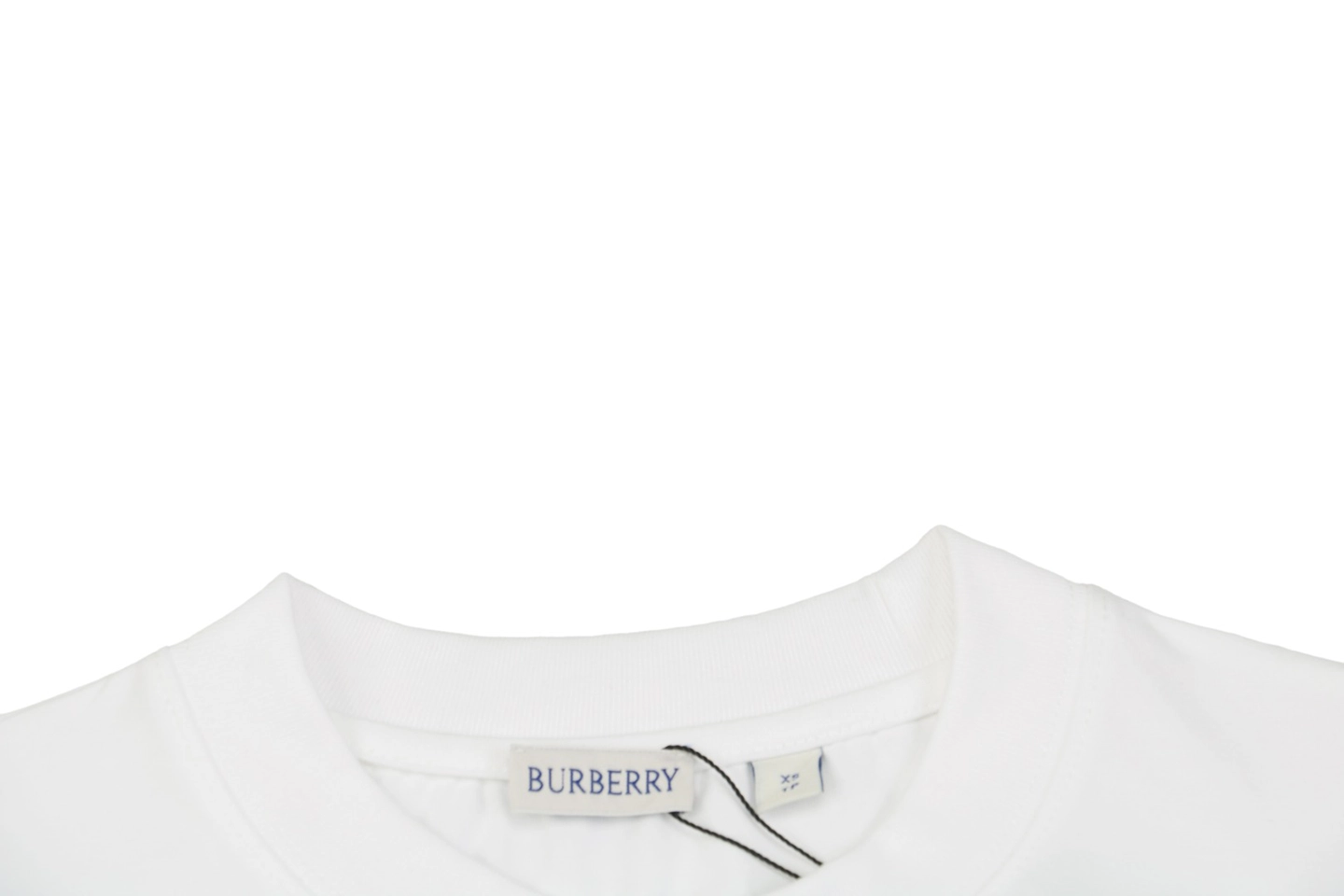 The BBry Equestrian Knight Embroidery T-shirt features a clean white base with a striking line-art embroidery of the iconic knight on horseback. Crafted from premium cotton, it ensures softness and breathability. The minimalist design is enhanced by the intricate stitching, offering a blend of heritage and contemporary streetwear style.