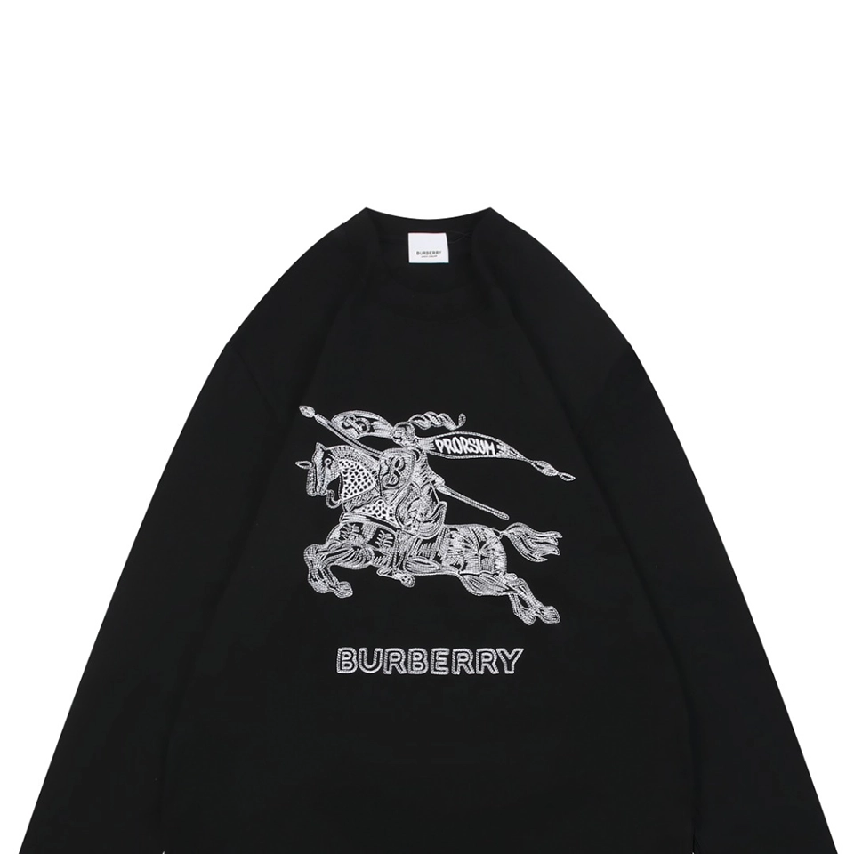 The BBry Equestrian Knight Fine-Line Embroidery Shirt features an intricate, fine-line embroidered depiction of BBry’s iconic Equestrian Knight motif across the chest. Crafted from soft, premium cotton, this long-sleeve tee offers a smooth and breathable feel while maintaining a structured silhouette. The minimal back and clean neckline further enhance its refined look, making it an effortless staple for everyday wear. Available in classic black and white, this piece blends heritage design with modern simplicity—ideal for those who appreciate subtle luxury and timeless branding.