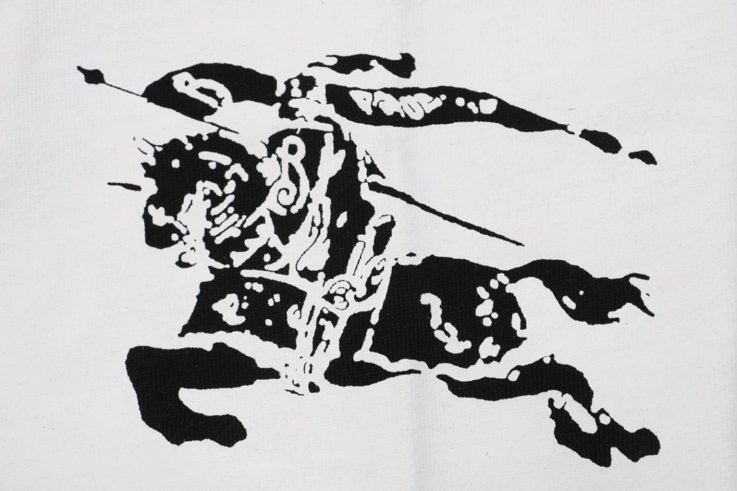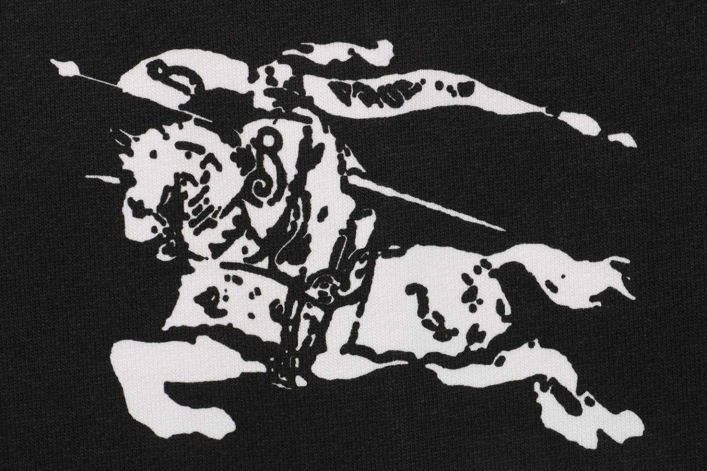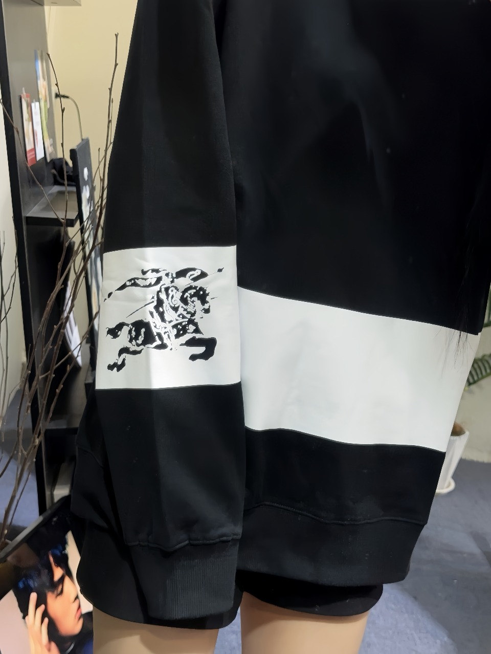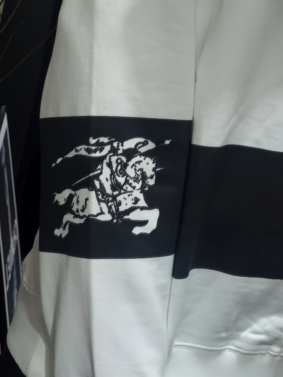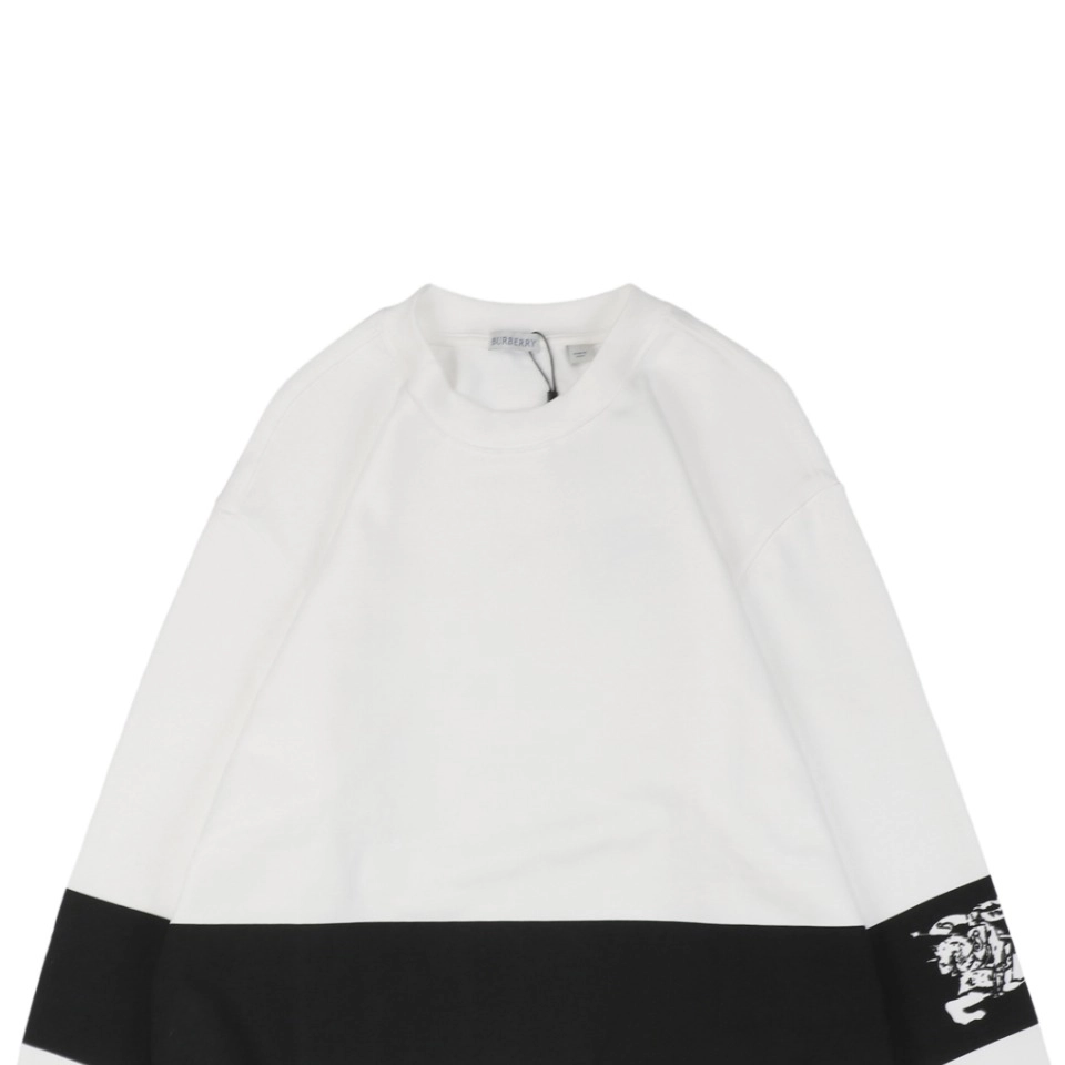 Crafted from premium cotton, the BBry Equestrian Knight Stripe Panel Sweatshirt reinterprets classic athletic styling with a bold horizontal stripe and a signature equestrian knight graphic on the sleeve. The oversized silhouette offers a relaxed fit, while the high-density print and contrast blocking add modern streetwear appeal. Available in monochrome palettes for versatile styling, this piece merges heritage with casual edge.