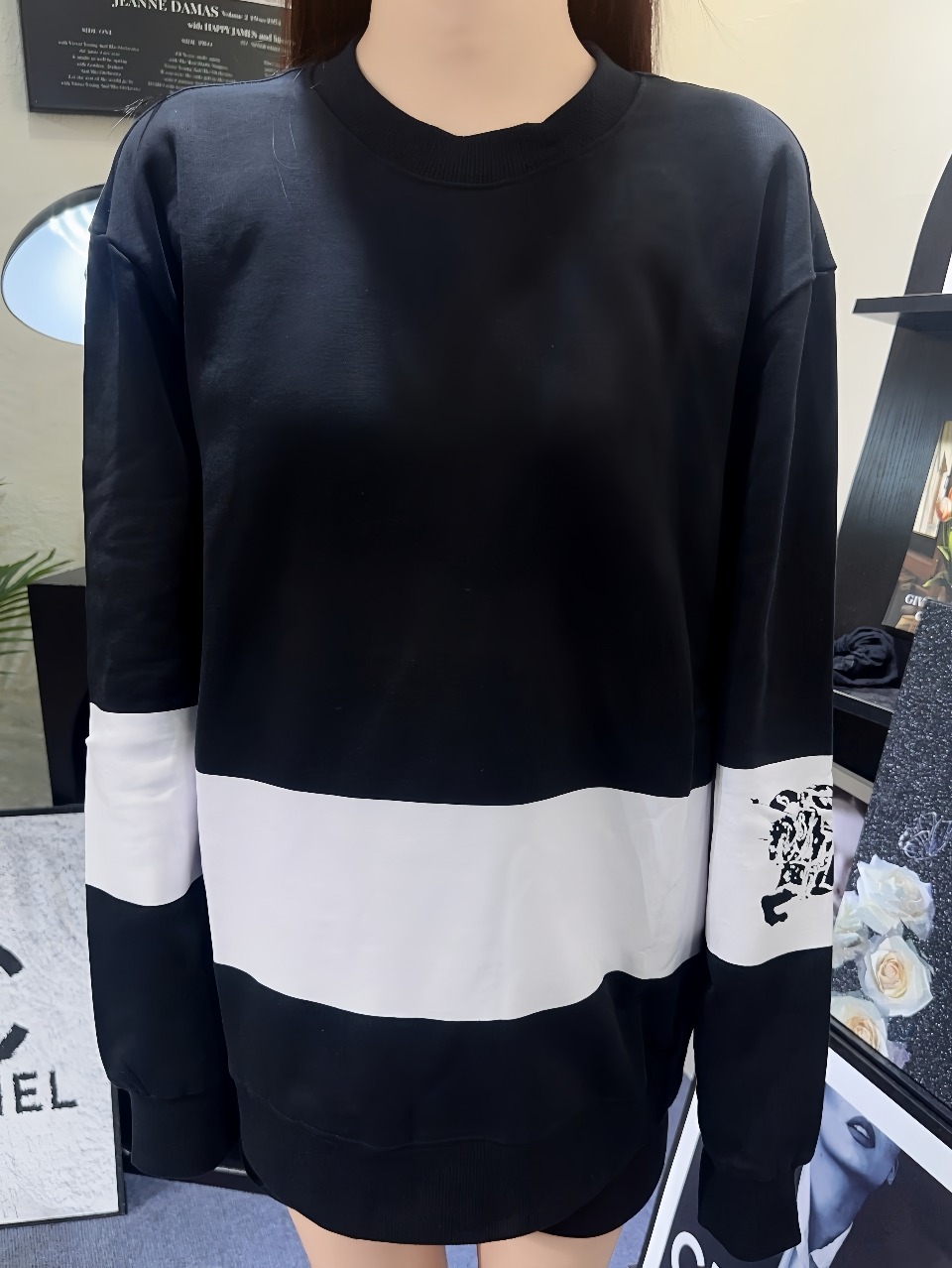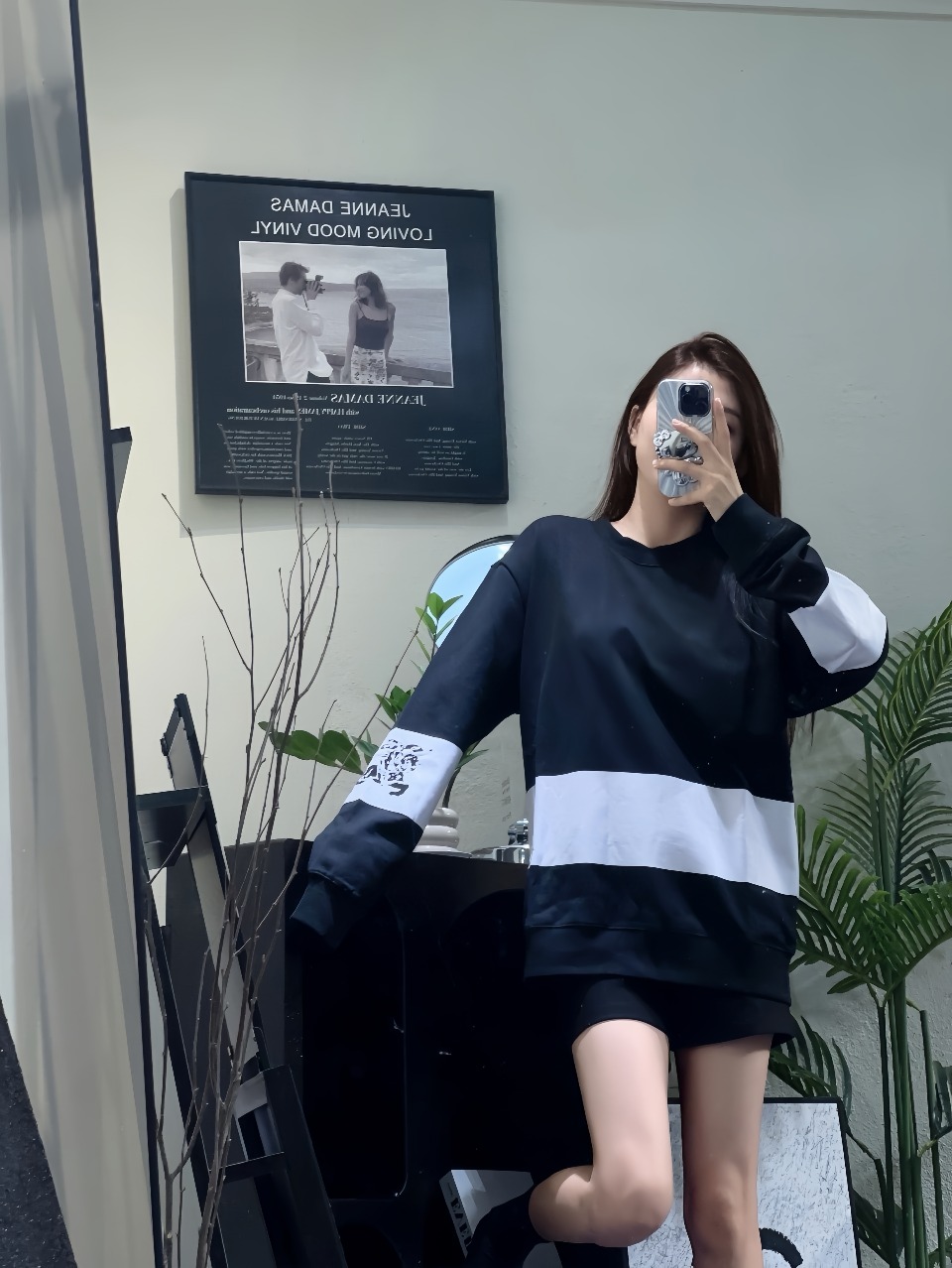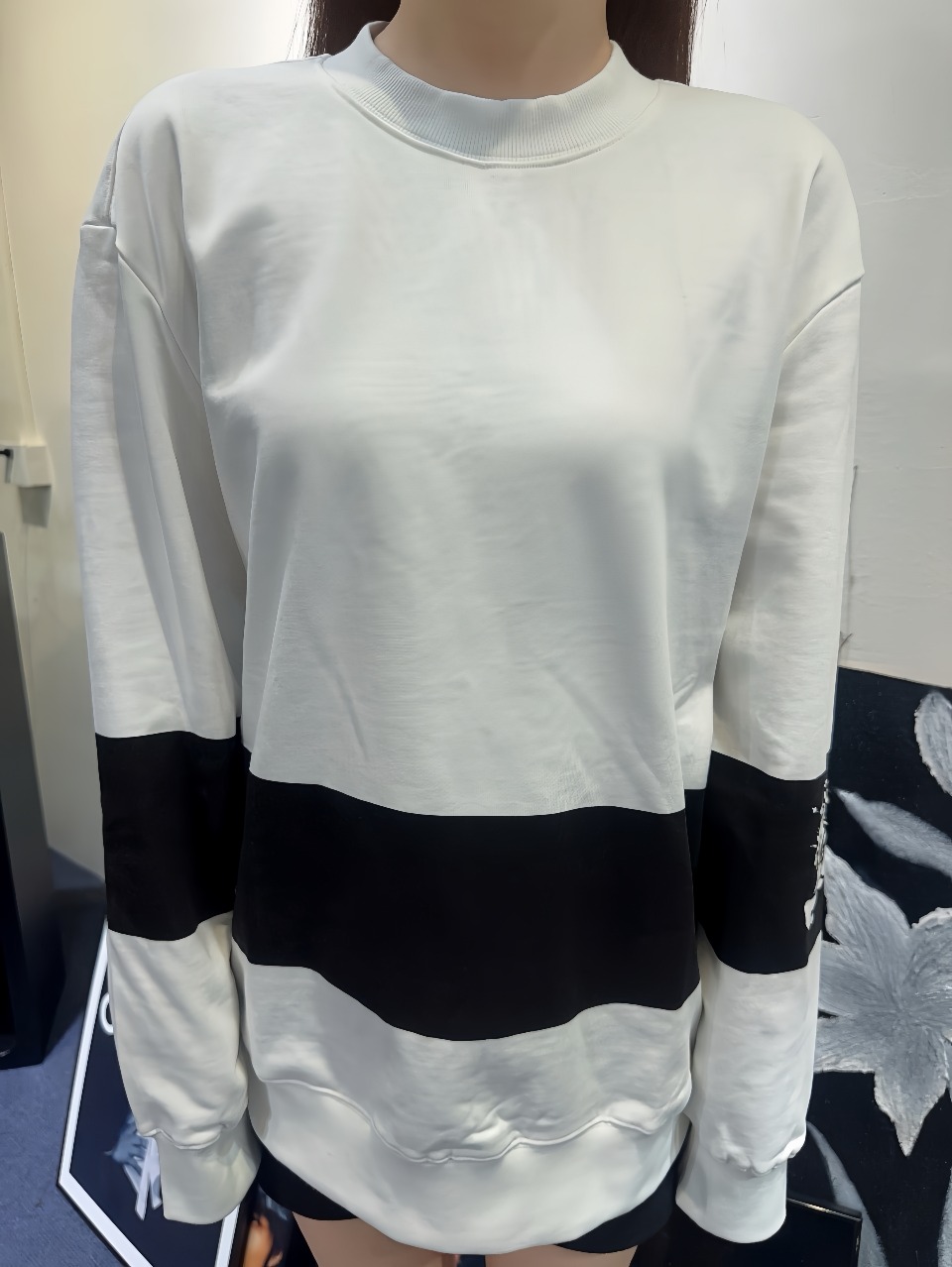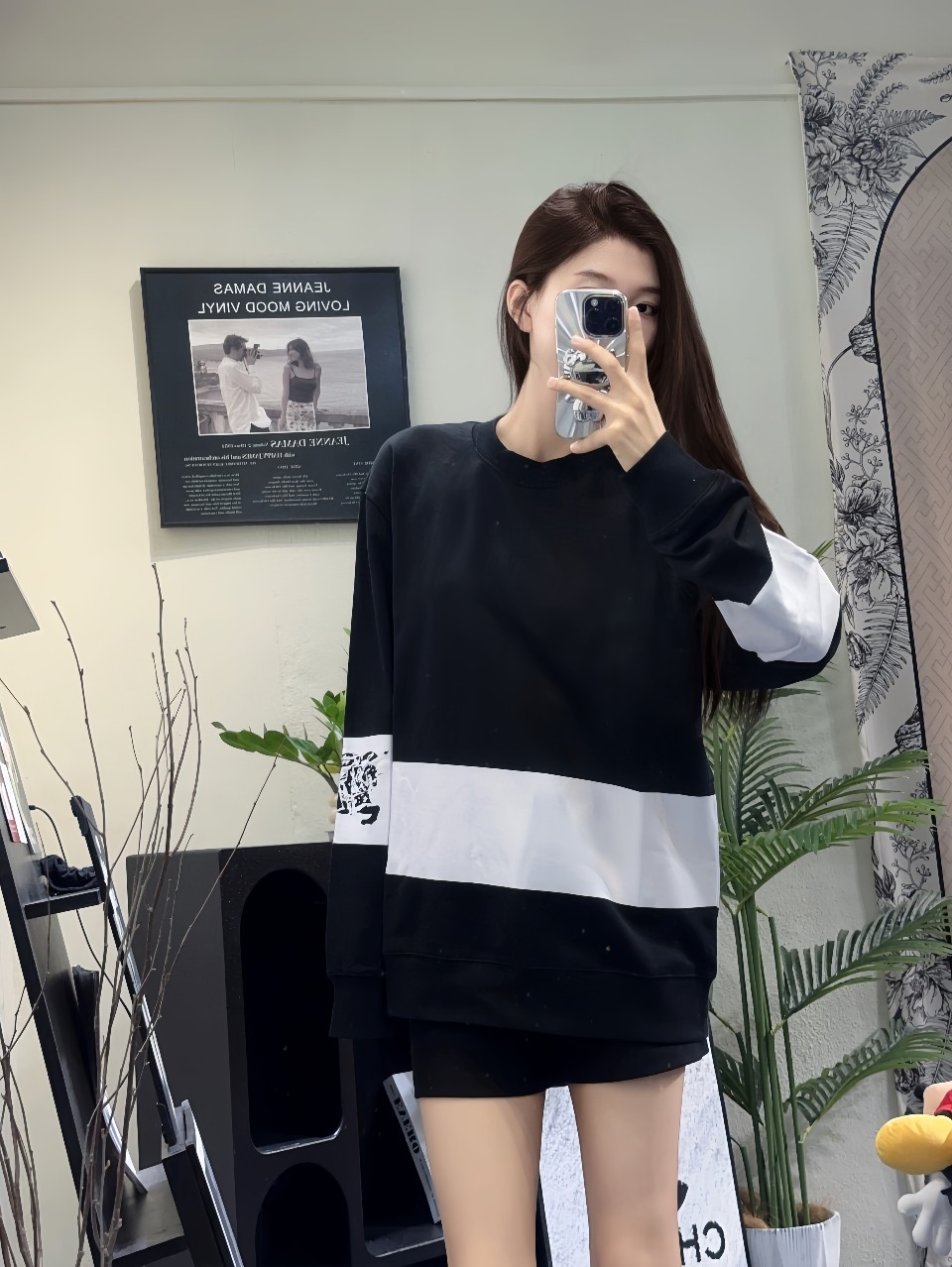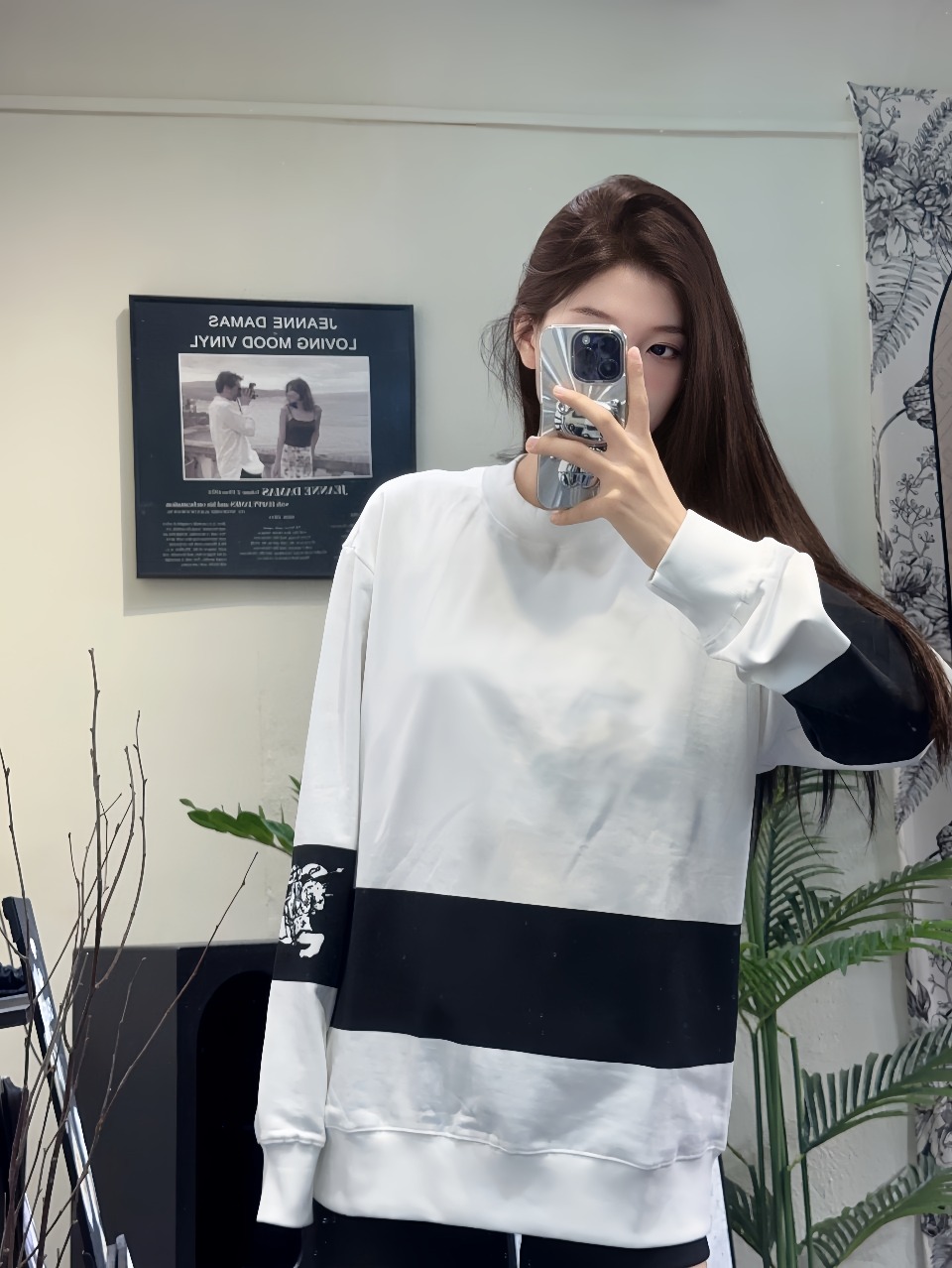 Crafted from premium cotton, the BBry Equestrian Knight Stripe Panel Sweatshirt reinterprets classic athletic styling with a bold horizontal stripe and a signature equestrian knight graphic on the sleeve. The oversized silhouette offers a relaxed fit, while the high-density print and contrast blocking add modern streetwear appeal. Available in monochrome palettes for versatile styling, this piece merges heritage with casual edge.