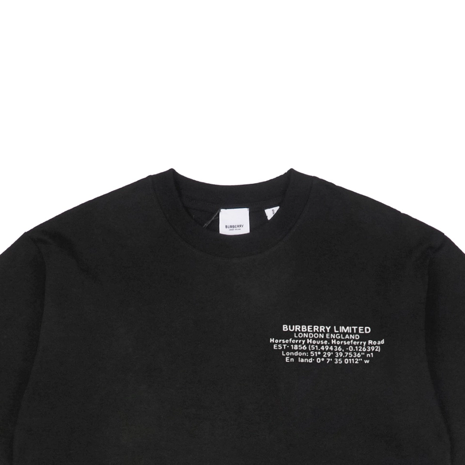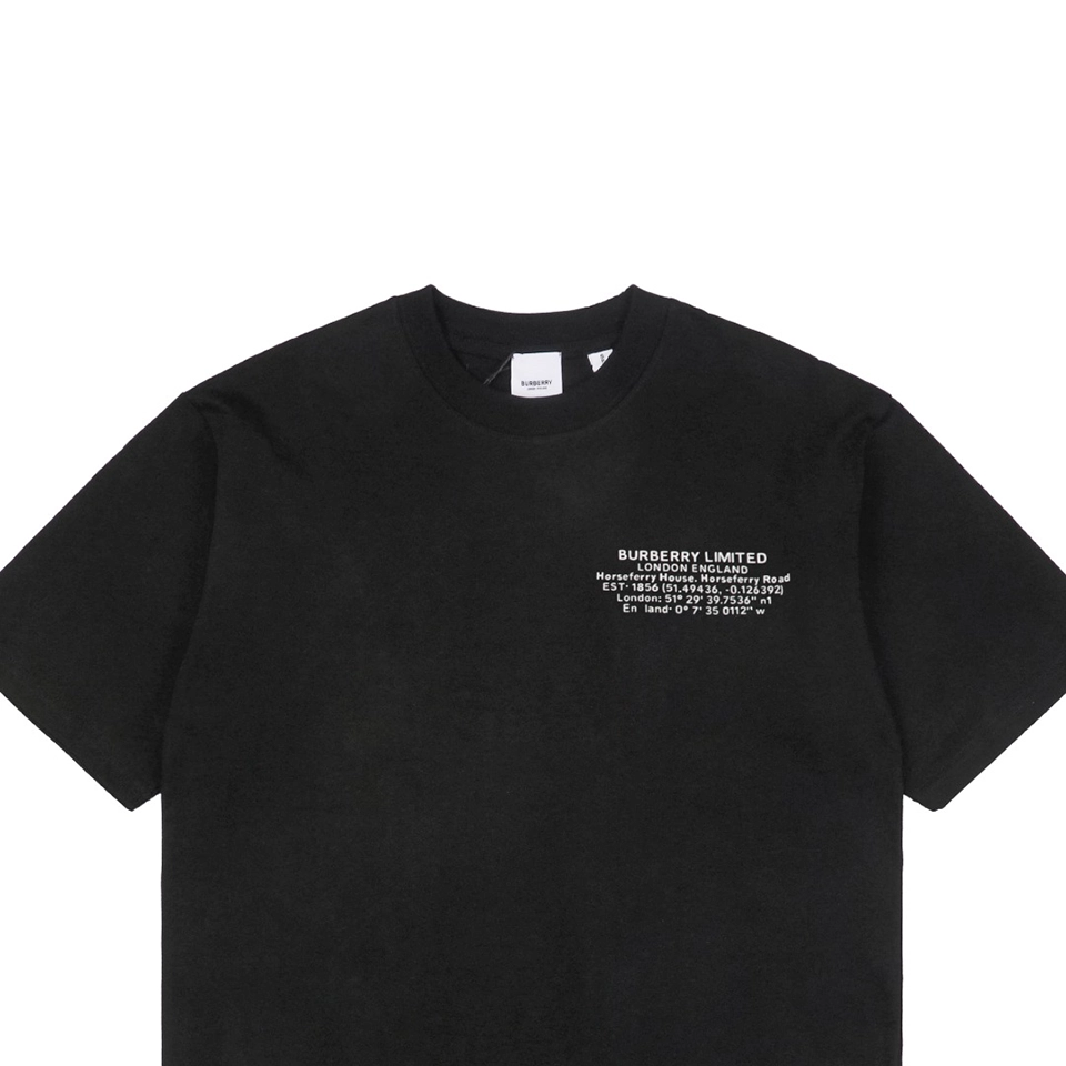 The BBry Geographical Coordinates Print T-shirt features a minimalist front chest design with BBry’s limited edition “BURBERRY LIMITED” typography and precise location coordinates. Crafted from soft cotton jersey with a structured silhouette, this tee balances casual comfort with understated sophistication. Available in crisp white and deep black, it suits both monochrome layering and standalone statement wear.
