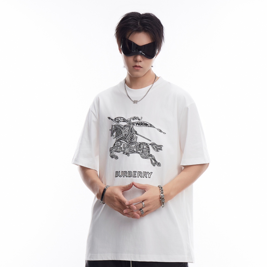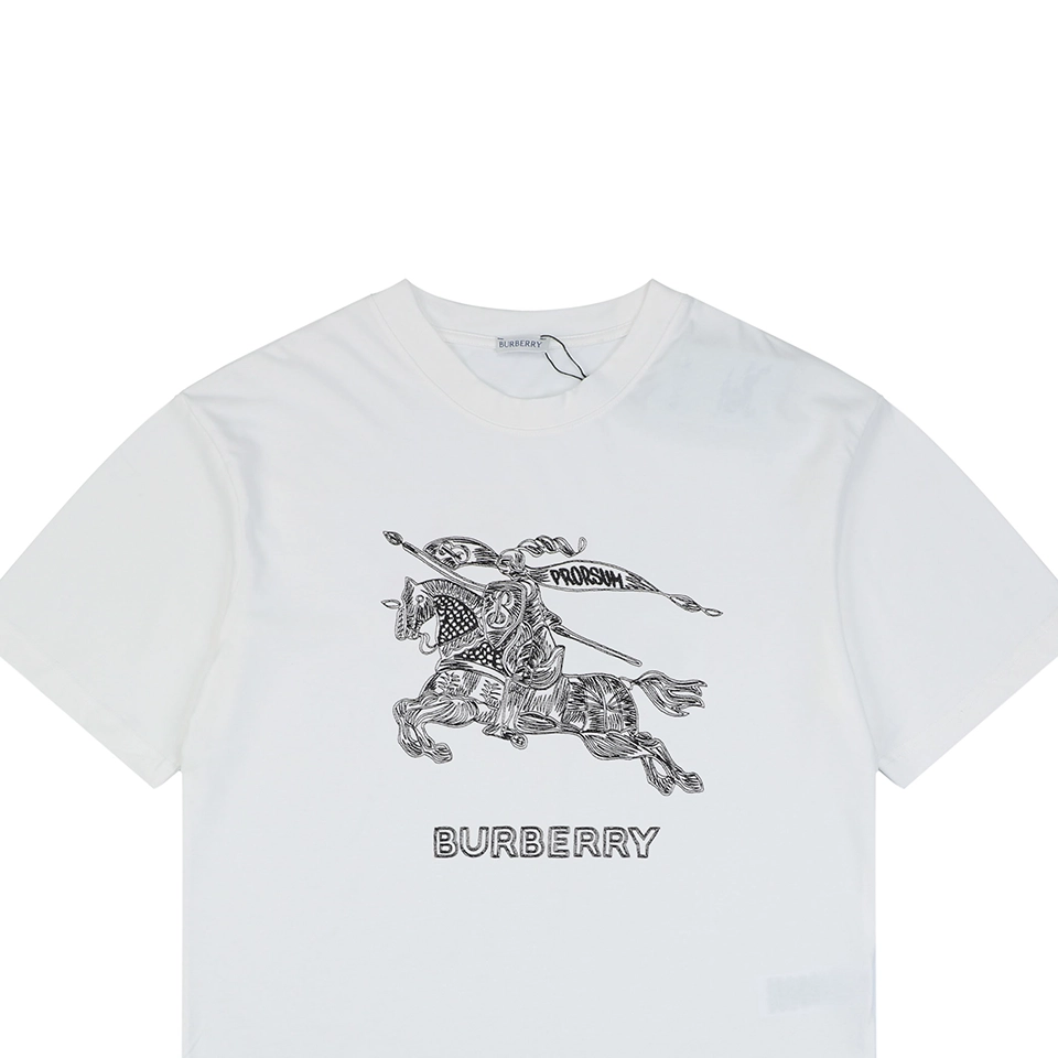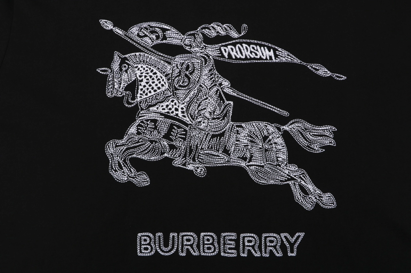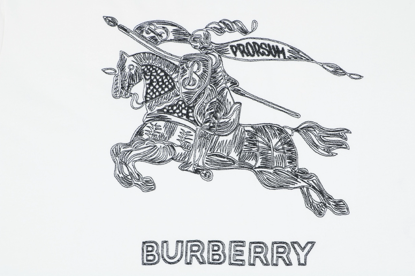 The front features an oversized Equestrian Knight motif paired with BBry lettering, rendered in detailed embroidery for a refined yet impactful look. The clean linework highlights the heritage design while adding depth and texture.