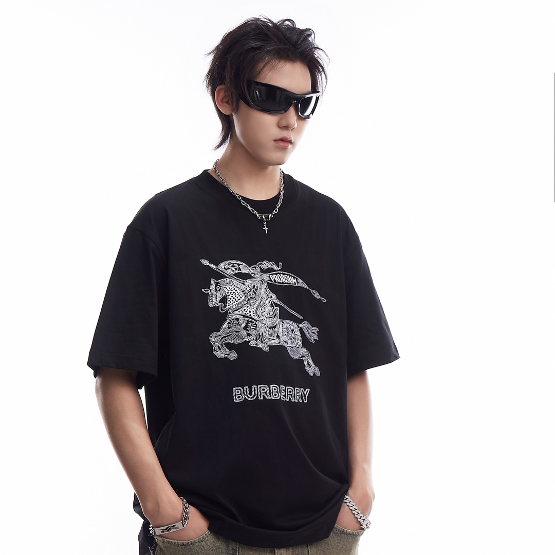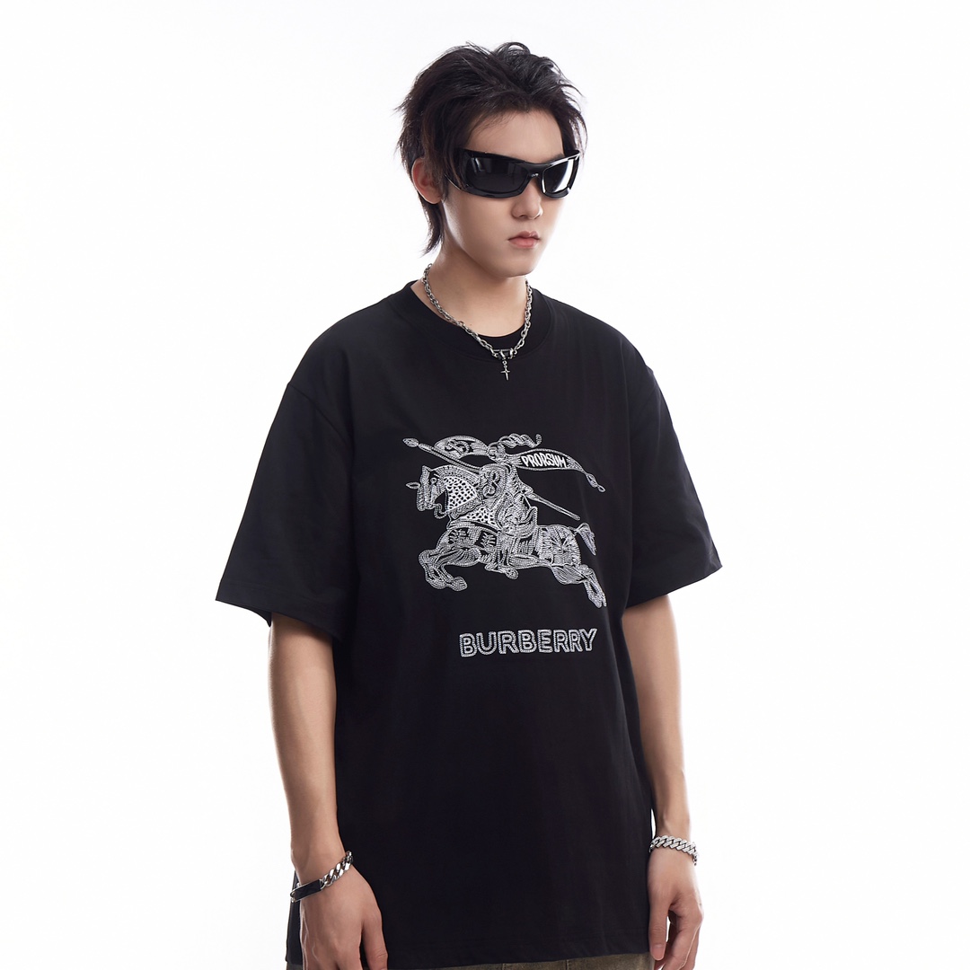 The BBry Large Equestrian Knight Logo Embroidered Washed Cotton T-Shirt delivers a bold take on the brand’s iconic identity.