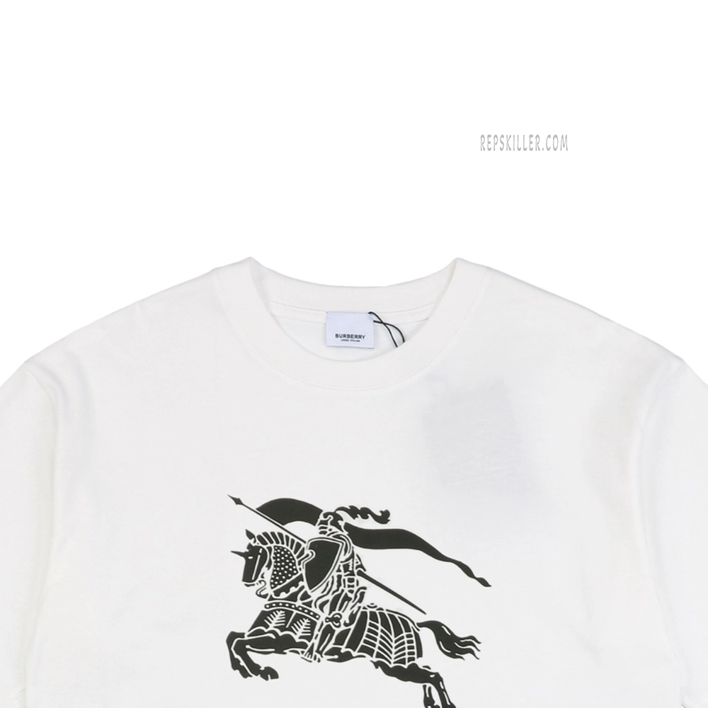 The BBry Large Equestrian Knight Logo Print T-Shirt features a bold, oversized rendition of the brand’s iconic knight-on-horse emblem, symbolizing honor, tradition, and heritage. Printed with crisp detail and strong contrast, the graphic commands attention while blending British classicism with streetwear edge. Crafted from soft high-thread-count cotton in a relaxed fit, this piece reinterprets vintage identity through a modern lens.
