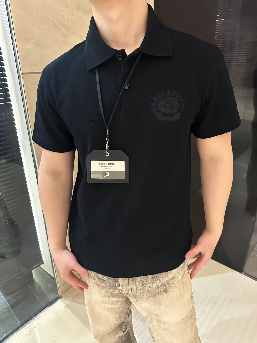 The BBry Oak Leaf Equestrian Embroidery Polo T-Shirt features an intricate emblem design combining the iconic equestrian knight motif with a wreath of oak leaves, symbolizing honor, tradition, and resilience. Executed in high-density embroidery, the logo stands out with texture and depth. Made from structured, breathable piqué cotton with a classic button placket and tailored fit, this polo bridges British formality with modern street sensibility, perfect for versatile styling.