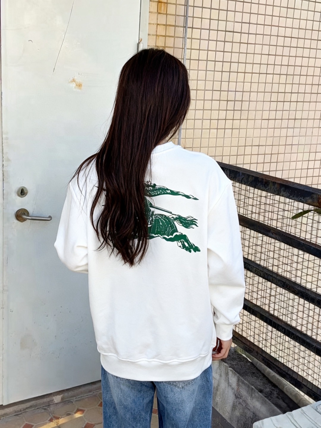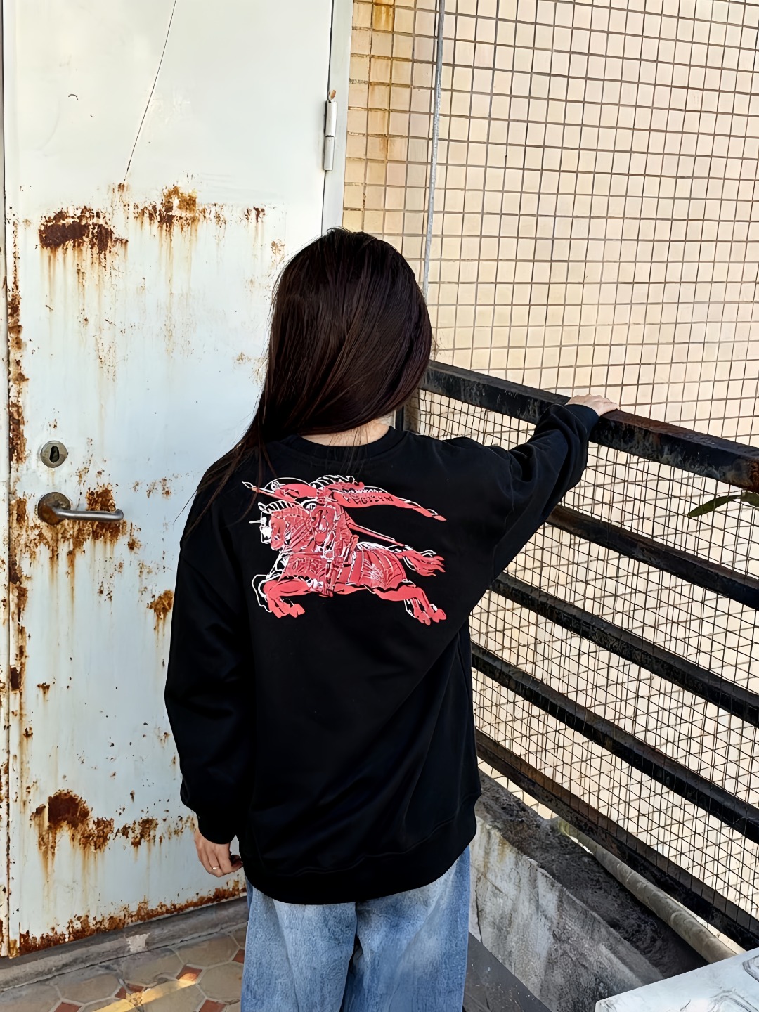 The BBry Overlapping Knight Print Crewneck Sweatshirt reinterprets the brand’s iconic equestrian motif through a layered graphic design, blending heritage aesthetics with a modern streetwear edge. The overlapping knight print adds depth and visual impact while maintaining a clean, minimalist overall look.
