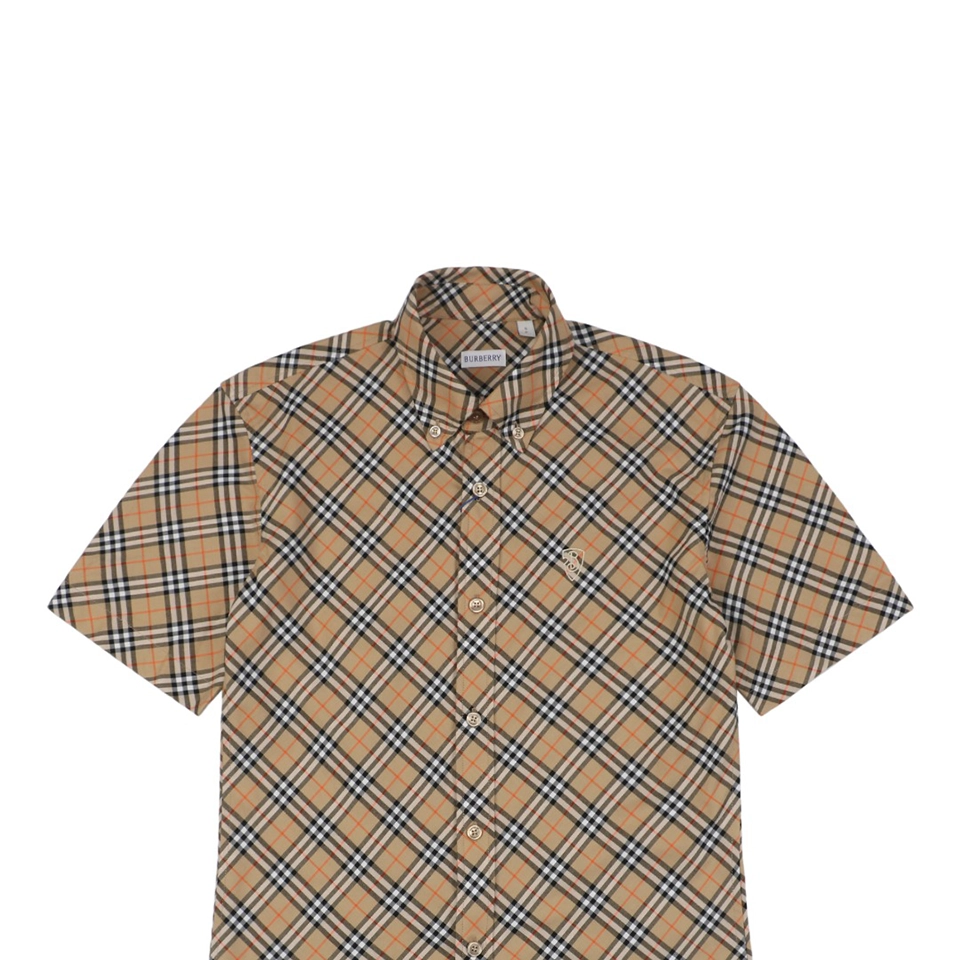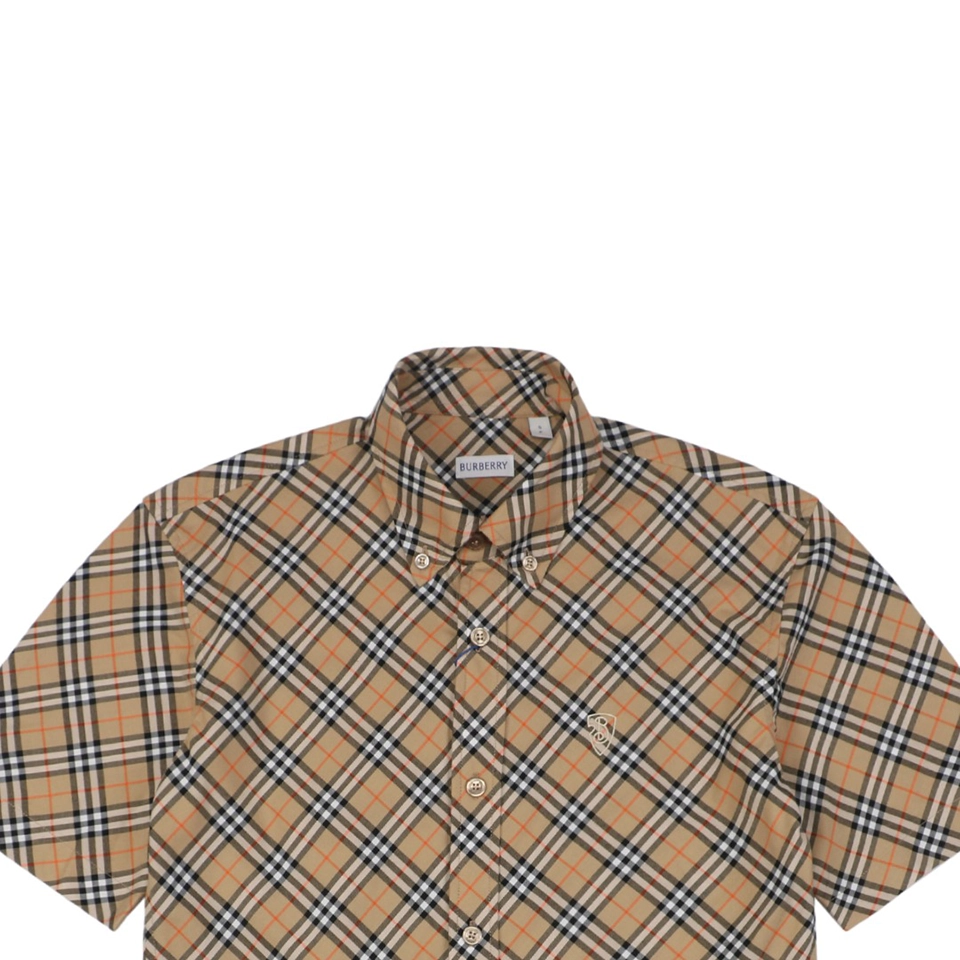 The BBry Shield Check T-shirt reimagines the house’s heritage with a diagonal shield-style check in beige, black, and red. Cut from soft cotton, it blends a relaxed silhouette with a refined edge, featuring a button-down neckline and curved hem that elevate its casual appeal. A versatile piece that transitions effortlessly from layering to standalone wear.
