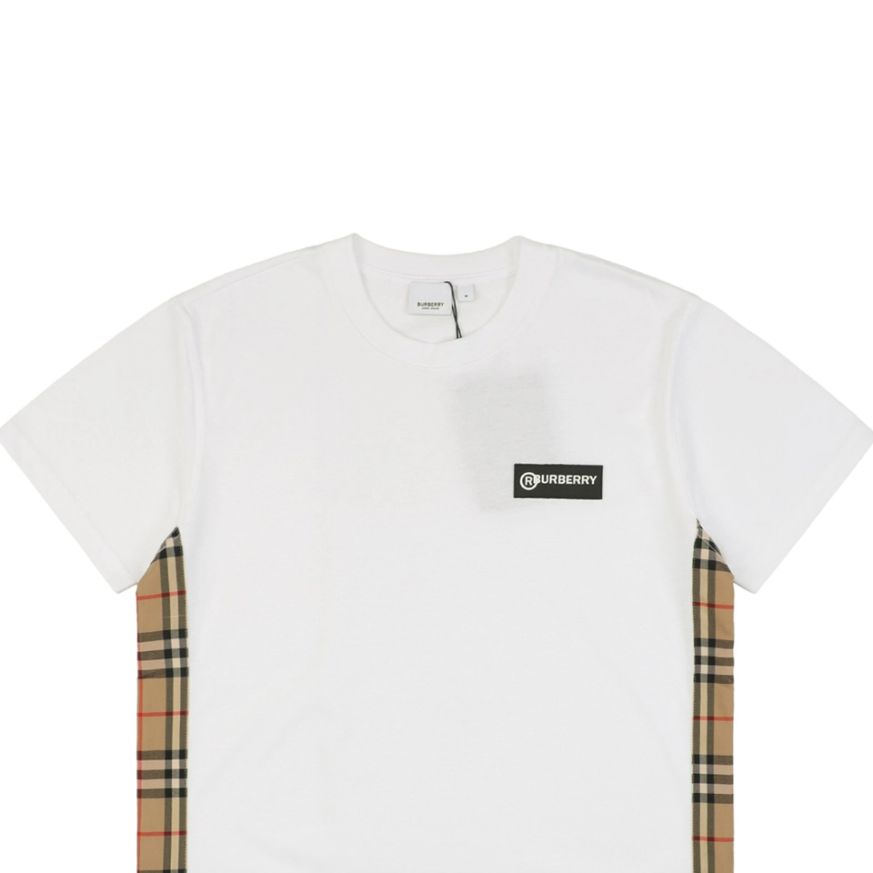 The BBry Side Panel Check T-shirt infuses classic British style into a minimal silhouette with signature check fabric inset along both side seams. A subtle nod to BBry’s iconic heritage, the contrast side panels add dimension and refinement without overwhelming the clean front. Cut from soft cotton in a relaxed fit, this piece delivers quiet sophistication with a touch of house tradition.