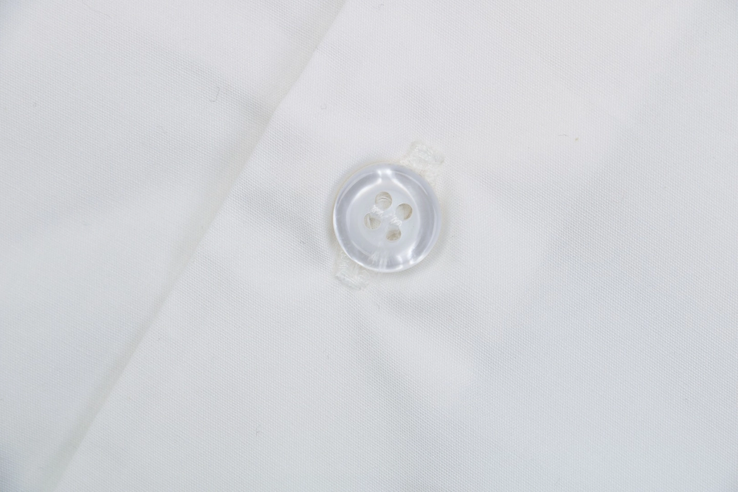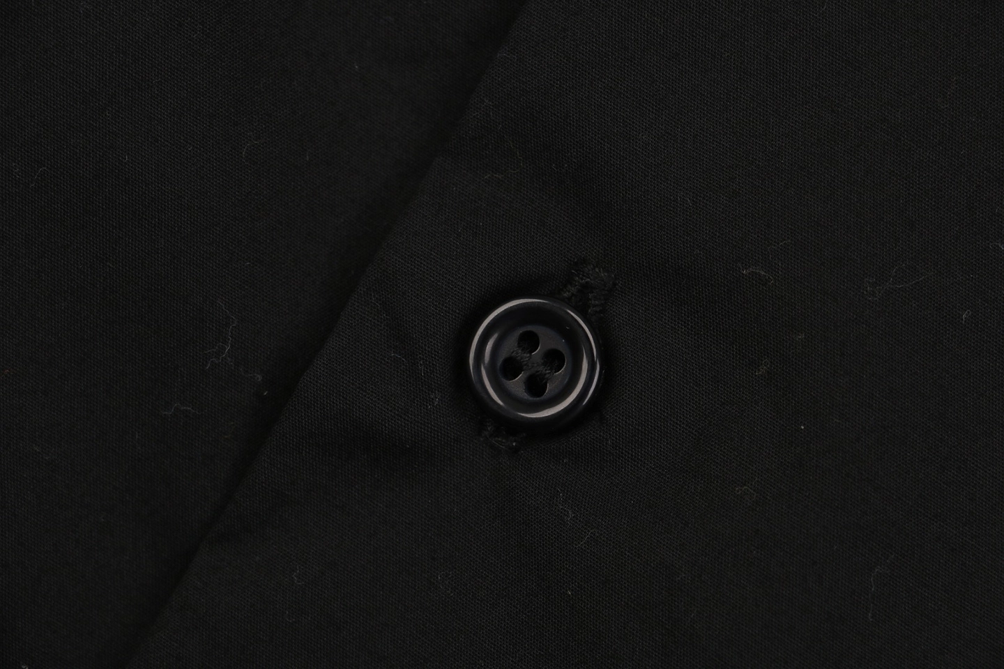 Each size is individually cut with precise pattern placement, ensuring consistent alignment across the front panels, pockets, and sleeves. The concealed placket and cuffs feature integrated woven tape for a streamlined finish, while custom-molded horn buttons enhance both tactile quality and longevity.