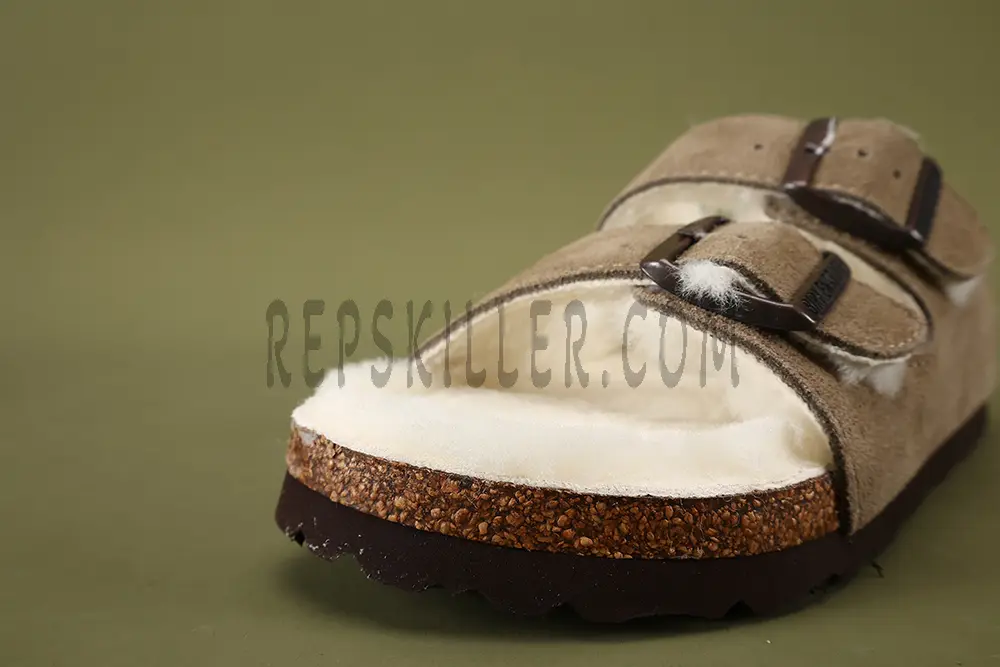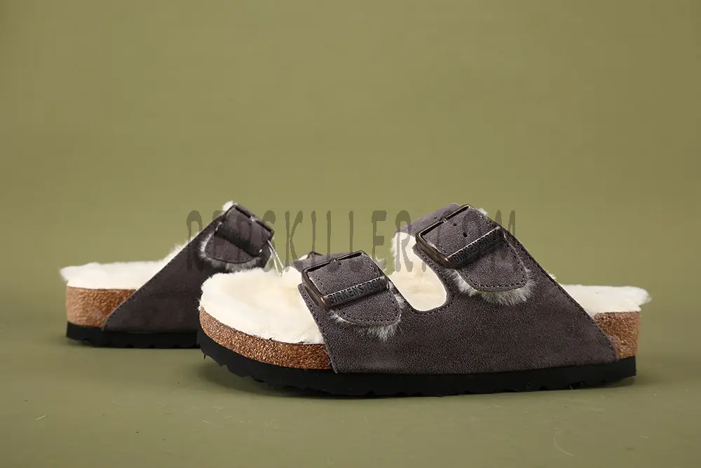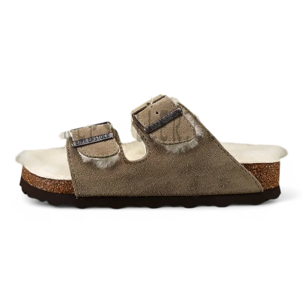 The Birkenstock Arizona Shearling Suede Leather combines the iconic two-strap sandal with luxurious warmth and comfort. Crafted from high-quality suede leather, it features soft shearling-lined straps and footbed for a cozy feel, perfect for chilly seasons. The contoured cork-latex sole ensures support and stability, while the adjustable straps provide a personalized fit. A blend of timeless style and plush comfort, it’s ideal for everyday wear with a touch of indulgence.