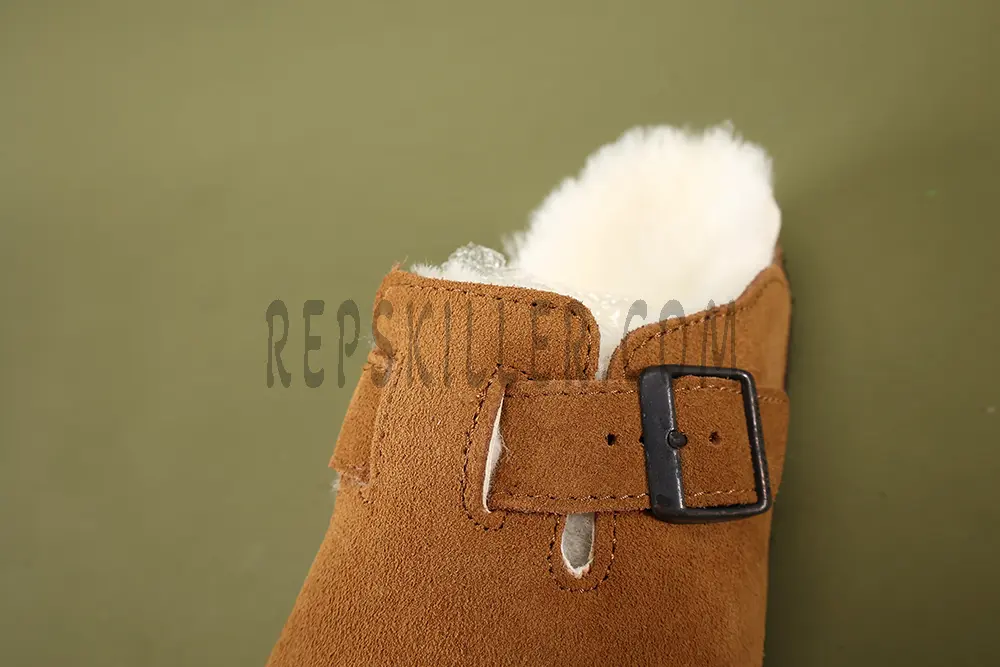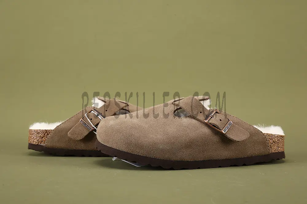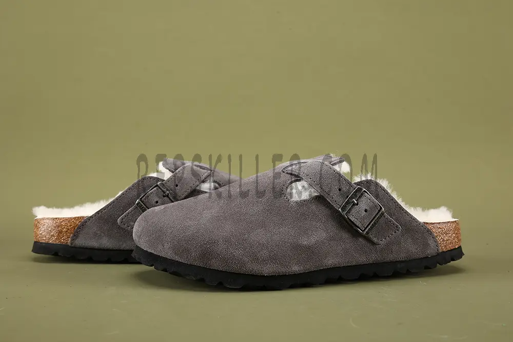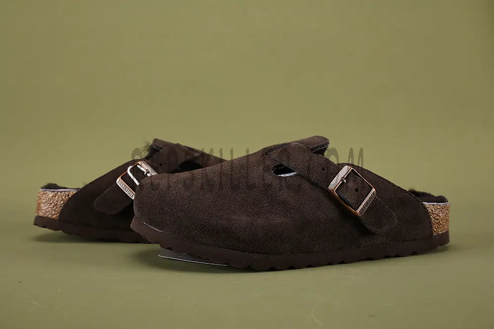 The Birkenstock Boston Shearling Suede Leather is a timeless clog reimagined for cooler weather. Crafted from premium suede leather, it features a plush shearling lining that adds warmth and luxurious comfort. With an adjustable strap for a secure fit and Birkenstock’s signature contoured cork footbed for optimal support, this clog combines style and functionality. Perfect for indoor or casual outdoor wear, it’s a must-have for cozy, effortless fashion.